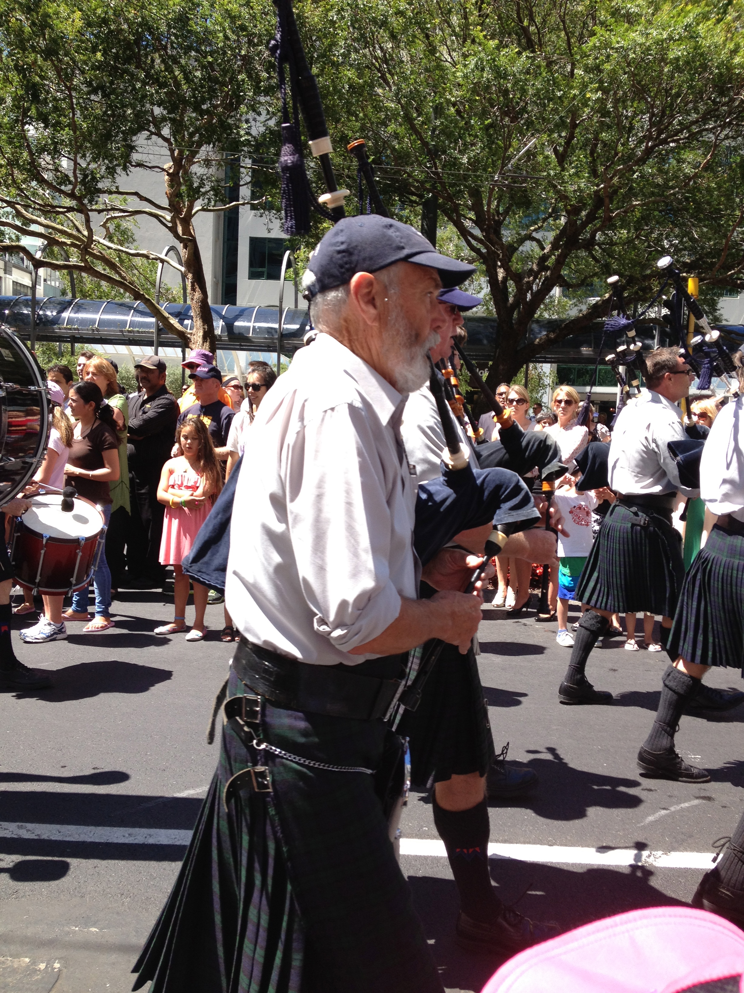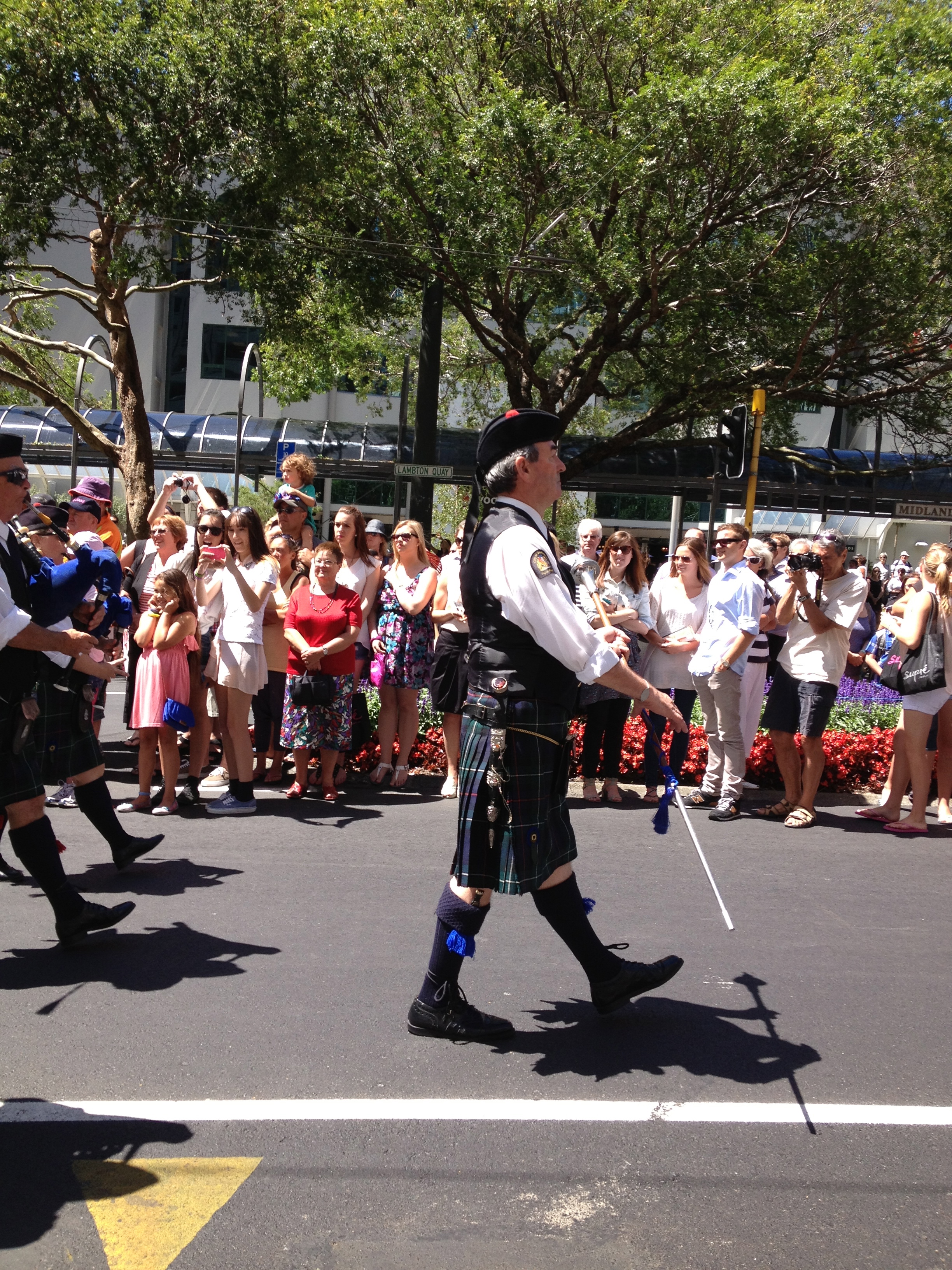 I went to see the parade of the teams through the town on Thursday. It was quite fun, particularly as it was led by a pipe band and the Scottish team also had a pipe band leading them. Unfortunately I didn’t get any good pics of my home country’s team, but did catch the pipers and some other tartan clad folk.