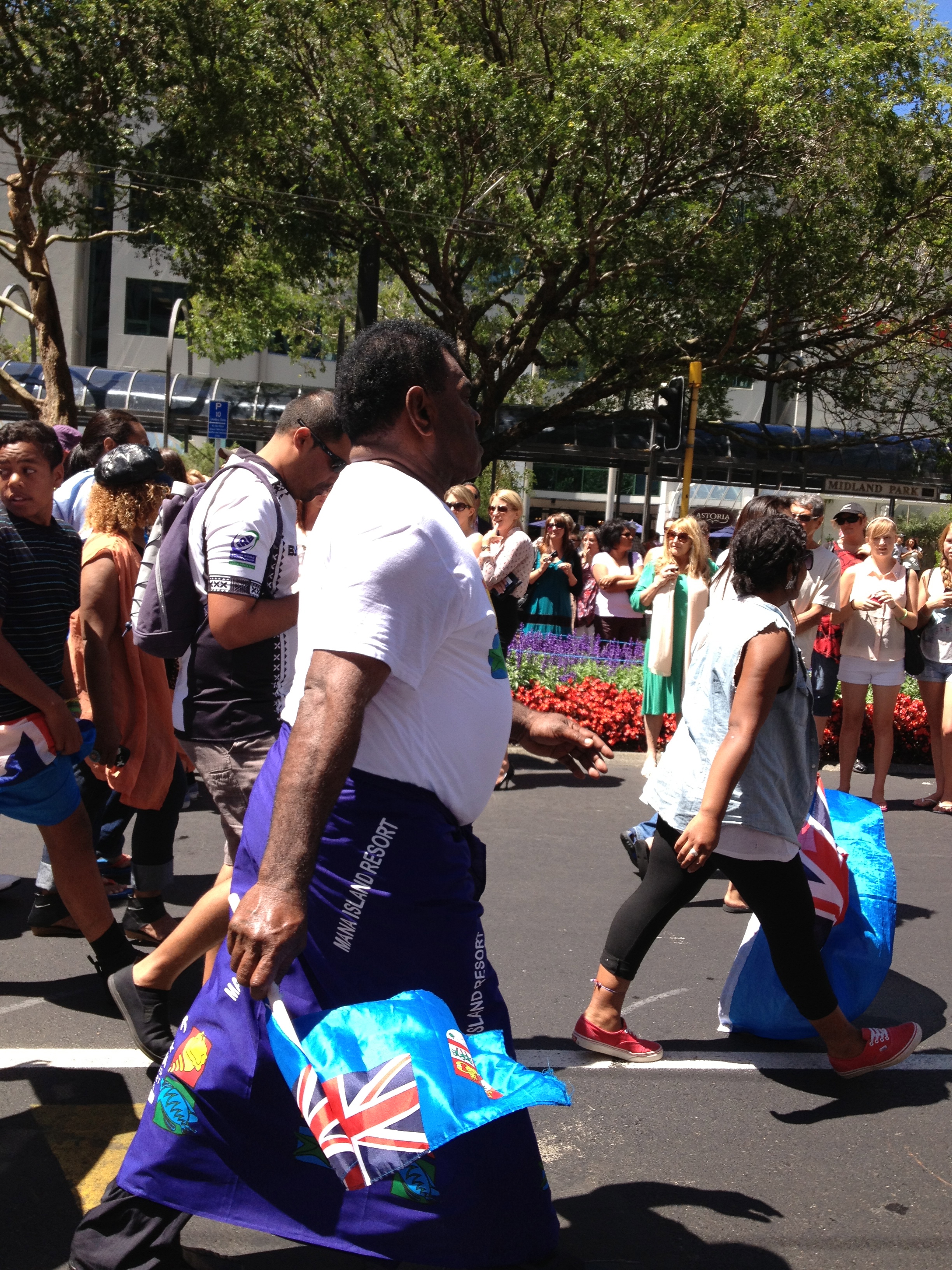 The tournament proper started yesterday, but we were so busy with getting phones, going to Anton’s school and other things that there was no time to catch any of the matches. Today though I have just watched New Zealand beat Australia 24:5 and could hear the cheers from the 7s party that seems to be happening in a neighbouring garden! It is actually quite interesting to watch as the stadium is half empty, a lot of people watching in pubs, at home or just walking about dressed up I guess. I did read something about this in one of the papers, and apparently it is a big concern for the organisers.