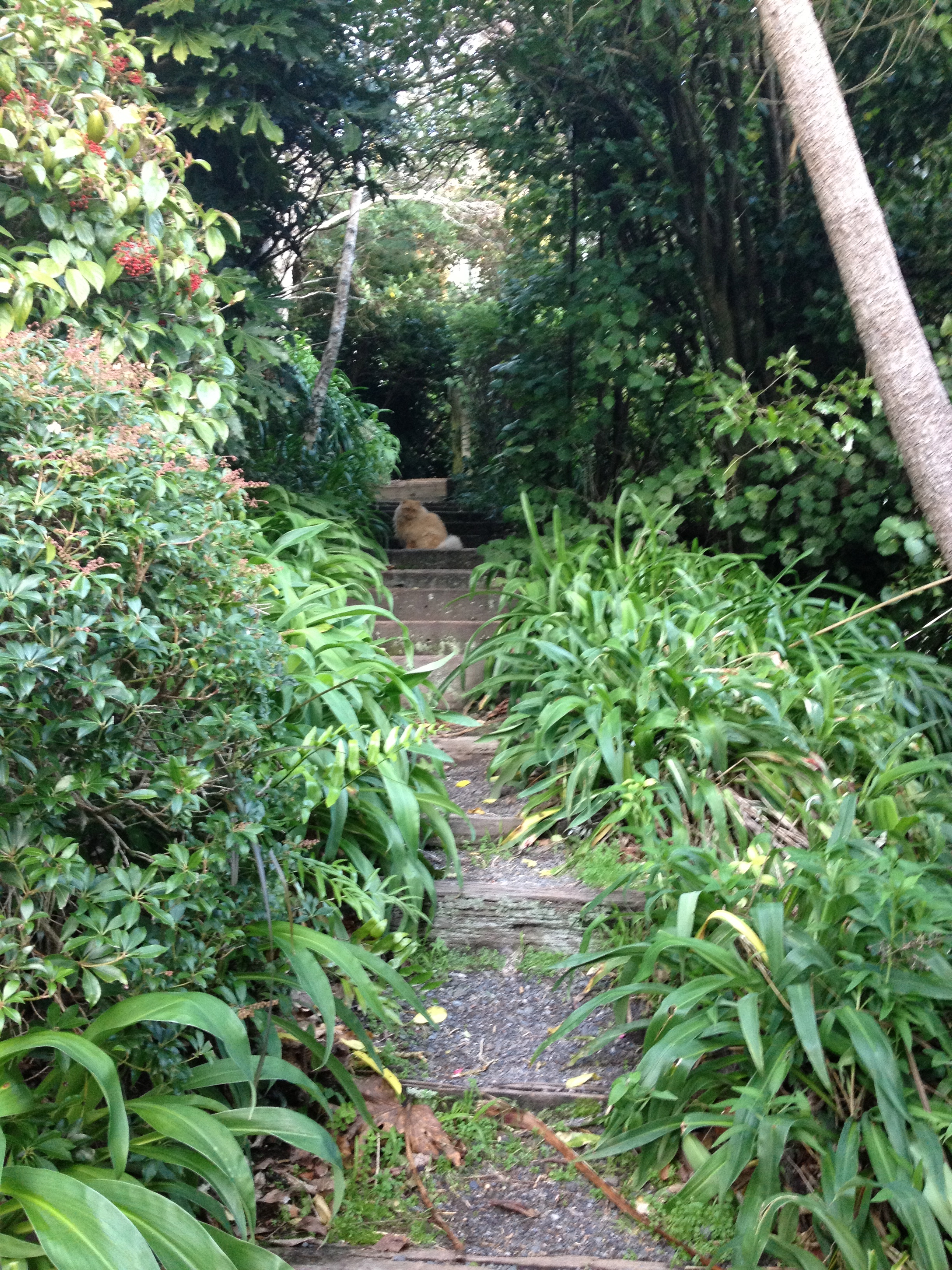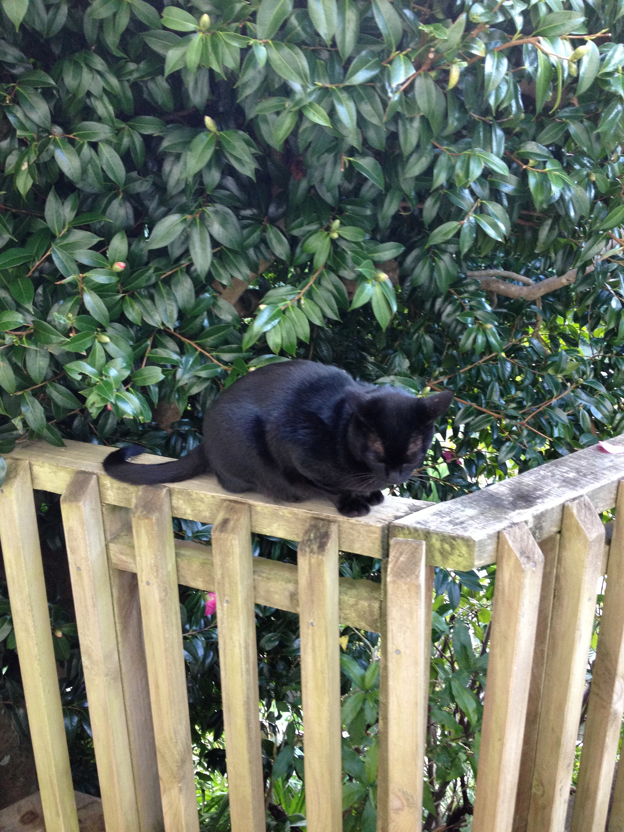 When I got home today, I was met by Misse Moj, who seemed unperturbed by the earlier earthquake, judging by the speed it ate some tuna and demanded to be played with. Here it is again this afternoon on the front terrace.