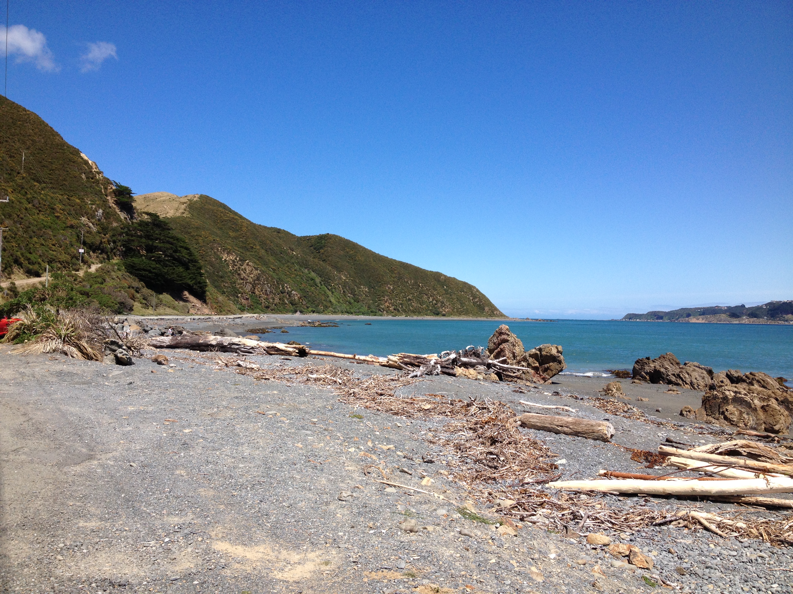 Of course, because I have gone back to work, the weather has been lovely the past few days. Still, on Sunday we were able to enjoy the sunshine and take a short trip out along the coast through Sunshine Bay, Island Bay and Eastbourne, to where the road stops at the start of the East Harbour National Park. There are lots of different walks that can be done around the area, but as we hadn’t brought our walking shoes or enough water for more than a casual stroll, we just took a short walk along the beach.