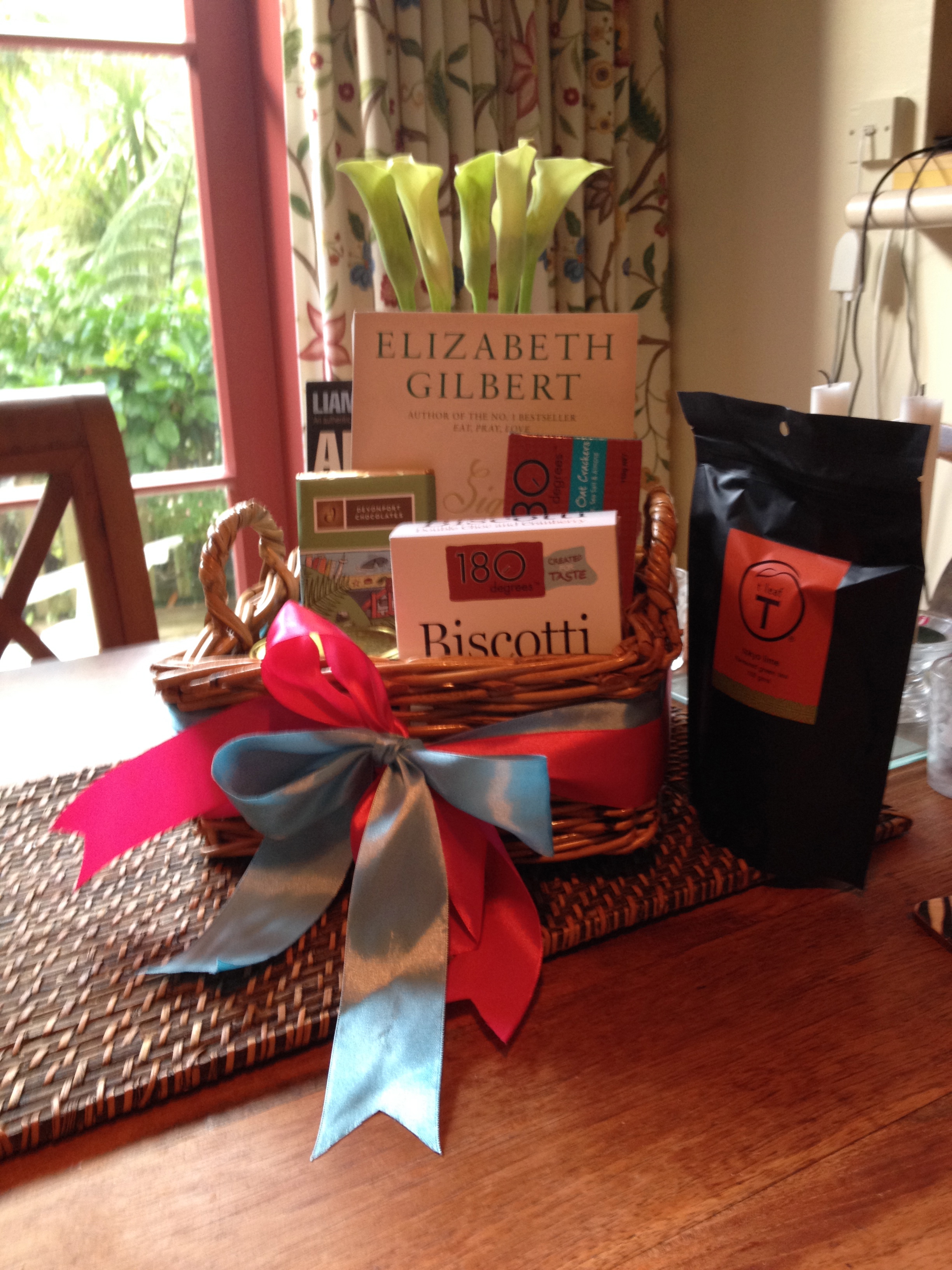 Pity I don’t like beetroot, as the beetroot relish included is probably good. I’ll just stick to the crackers, tea and books and pass the chocolate and biscotti on to the boys.