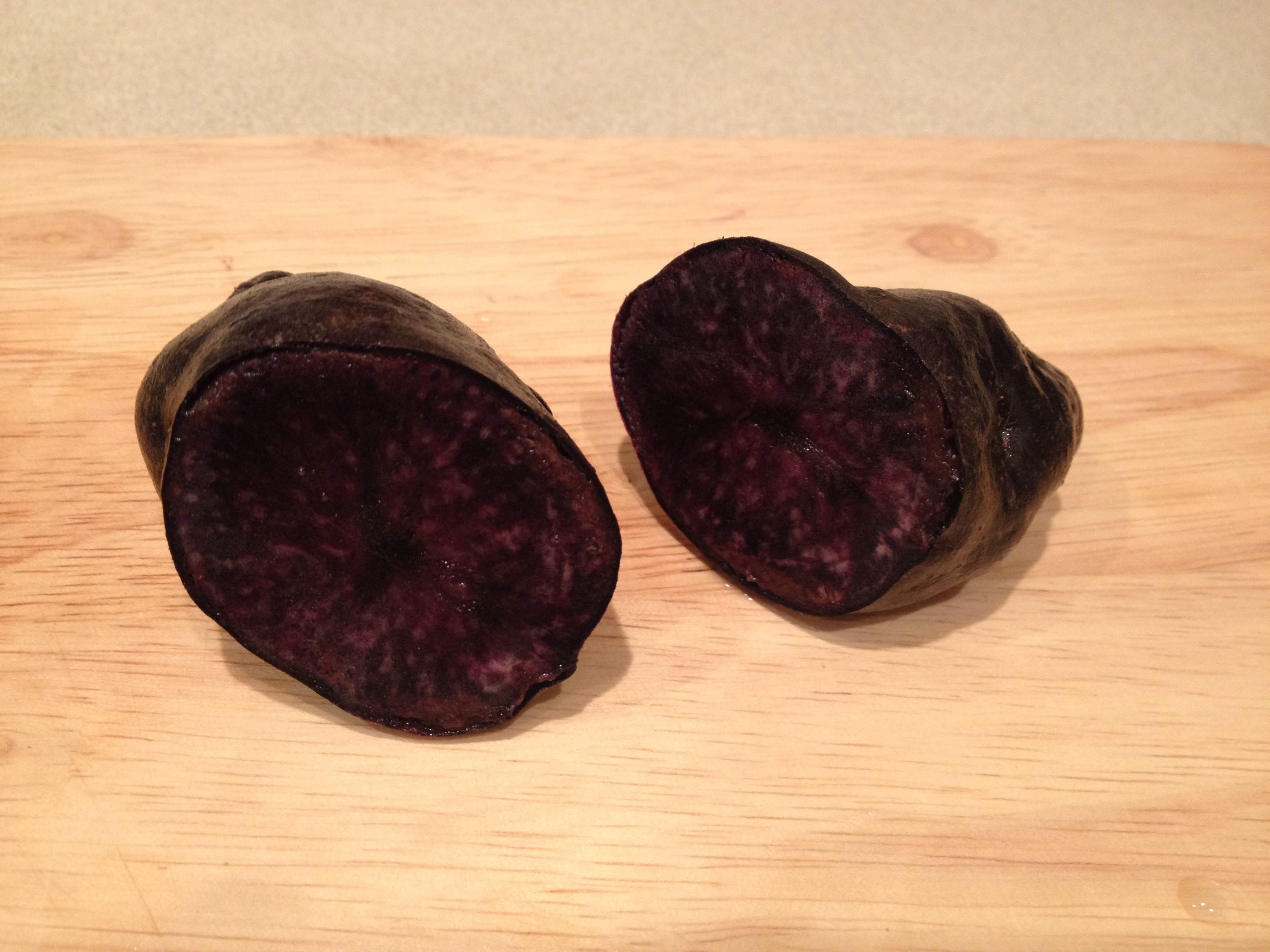 I spent most of yesterday marking assignments, so decided I needed something nice for dinner.  After my exercise classes (X-tend Barre and Melt – for another post), I popped into Moore Wilson again as it is just next door, and picked up something I have been meaning to try for ages, namely Maori potatoes.  These are small, gnarled, purple potatoes that have not been commercially cultivated. The ones I bought were urenika.  I didn’t do anything fancy with them, just steamed them, and gosh were they good!  Really full of proper potato flavour, rich and earthy, like ones just dug from the ground.