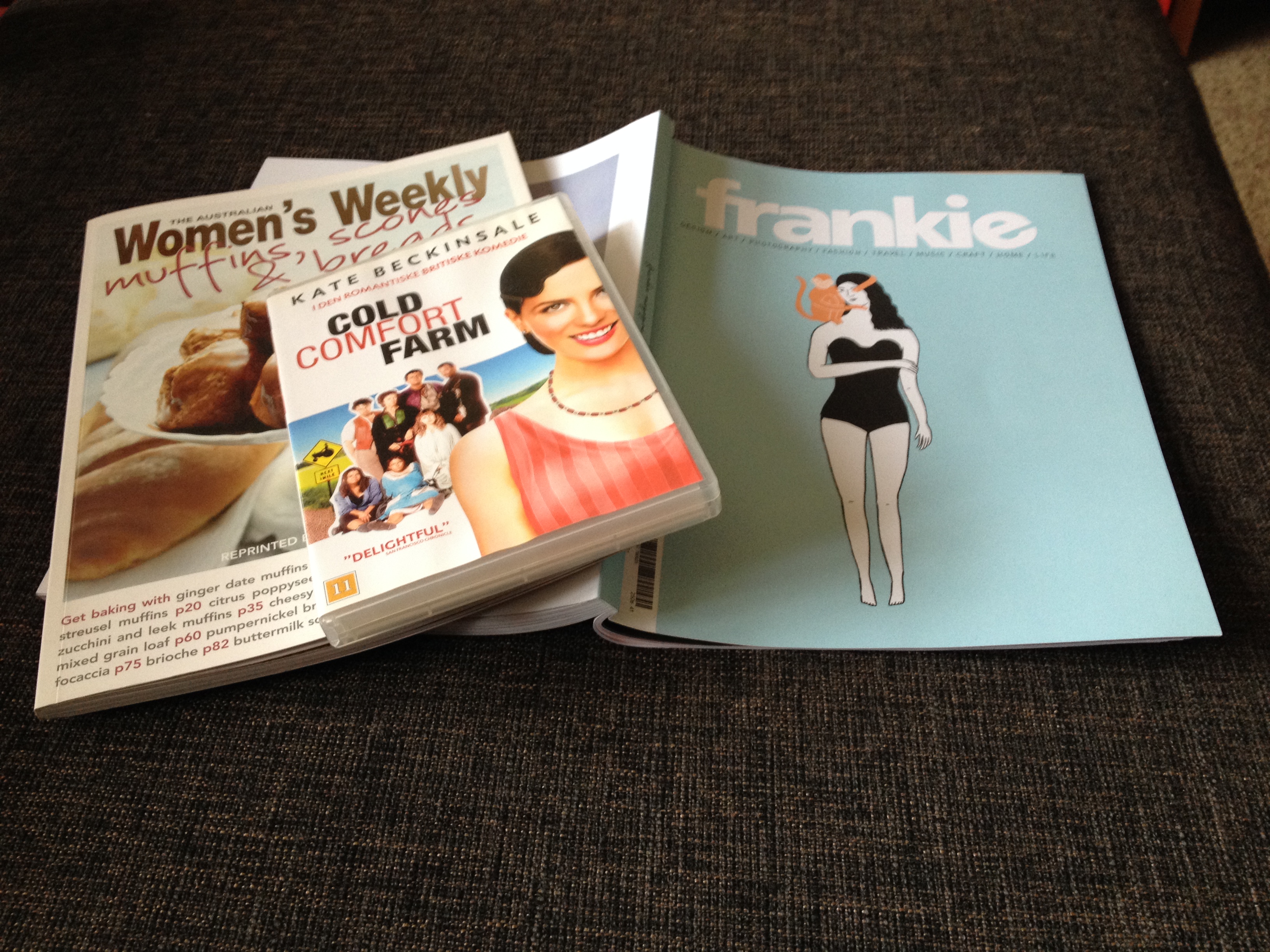 I’m on the sofa with my duvet, some magazines, and a cup of tea, blogging and watching the film version of “Cold Comfort Farm” (which I see was made in 1995). If you haven’t read the book, do so. Written by Stella Gibbons and first published in 1932, is one of those books to pick up on a rainy day or when you are feeling a little down and in need of cheering up. The film of course changes some of the details, but is pretty faithful to the spirit of the book.