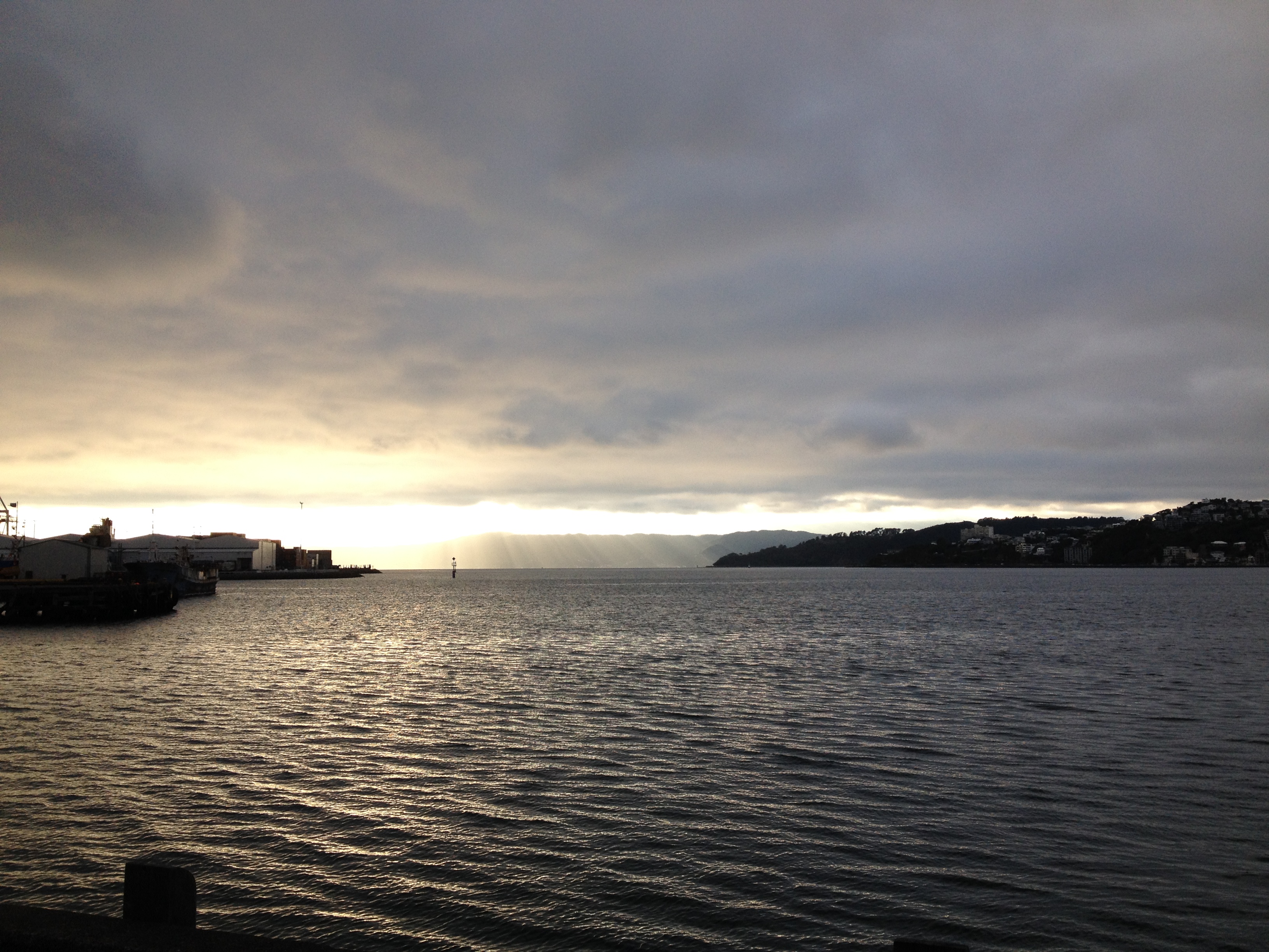 This morning I was a little early for my appointment with the chiropractor, so I walked down to the shore for a little fresh air and 5 minutes to myself. This is Wellington at 8am this morning.