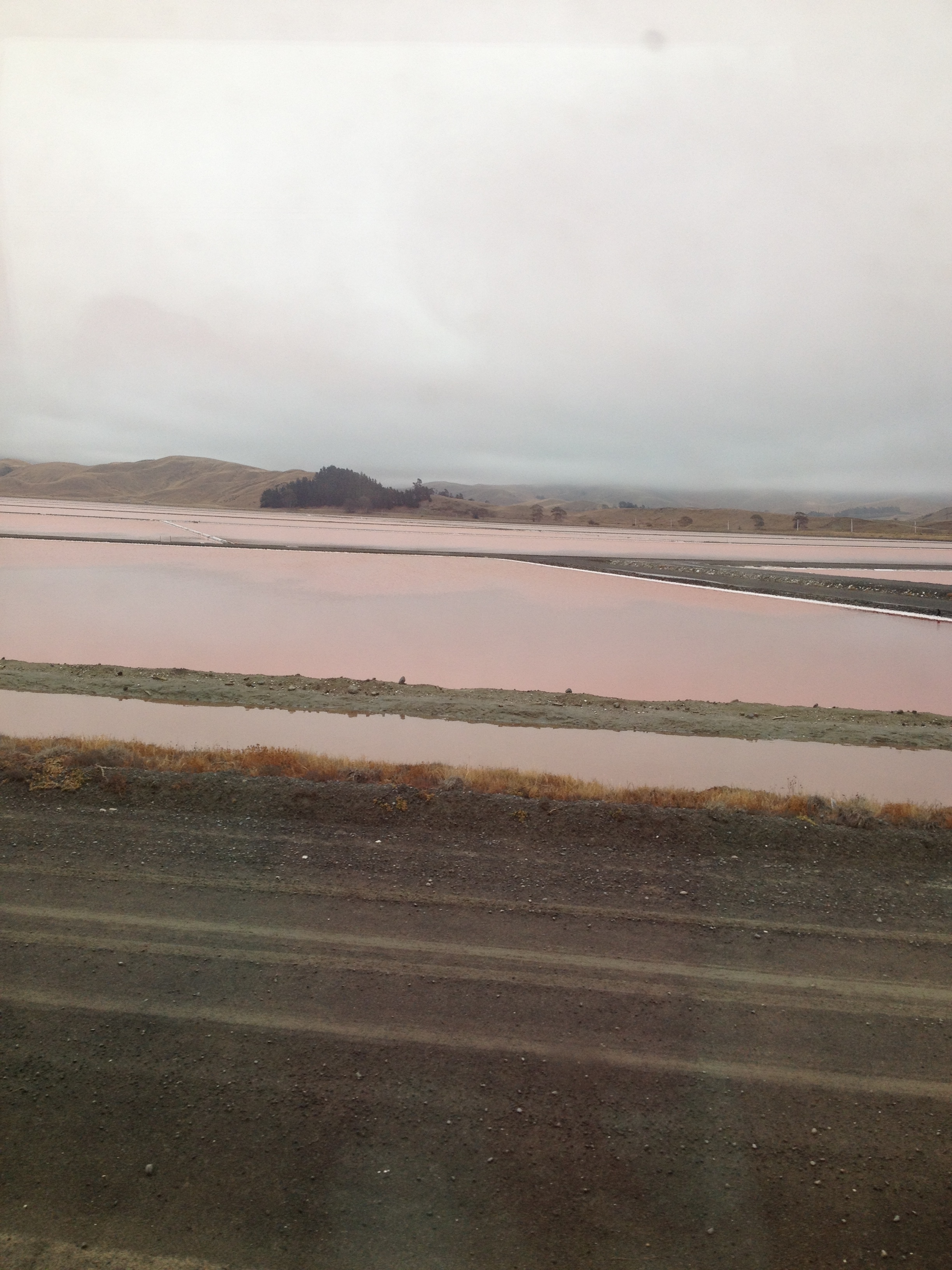 As I said, the weather wasn’t up to much, but we still saw a lot and it was great to experience this journey. We passed by Lake Grassmere, a shallow lagoon sheltered from the open sea. Its high salinity, coupled with warm, prevailing winds, actually makes it an ideal way to extract salt, and nearly half of New Zealand’s domestic salt comes from this area.