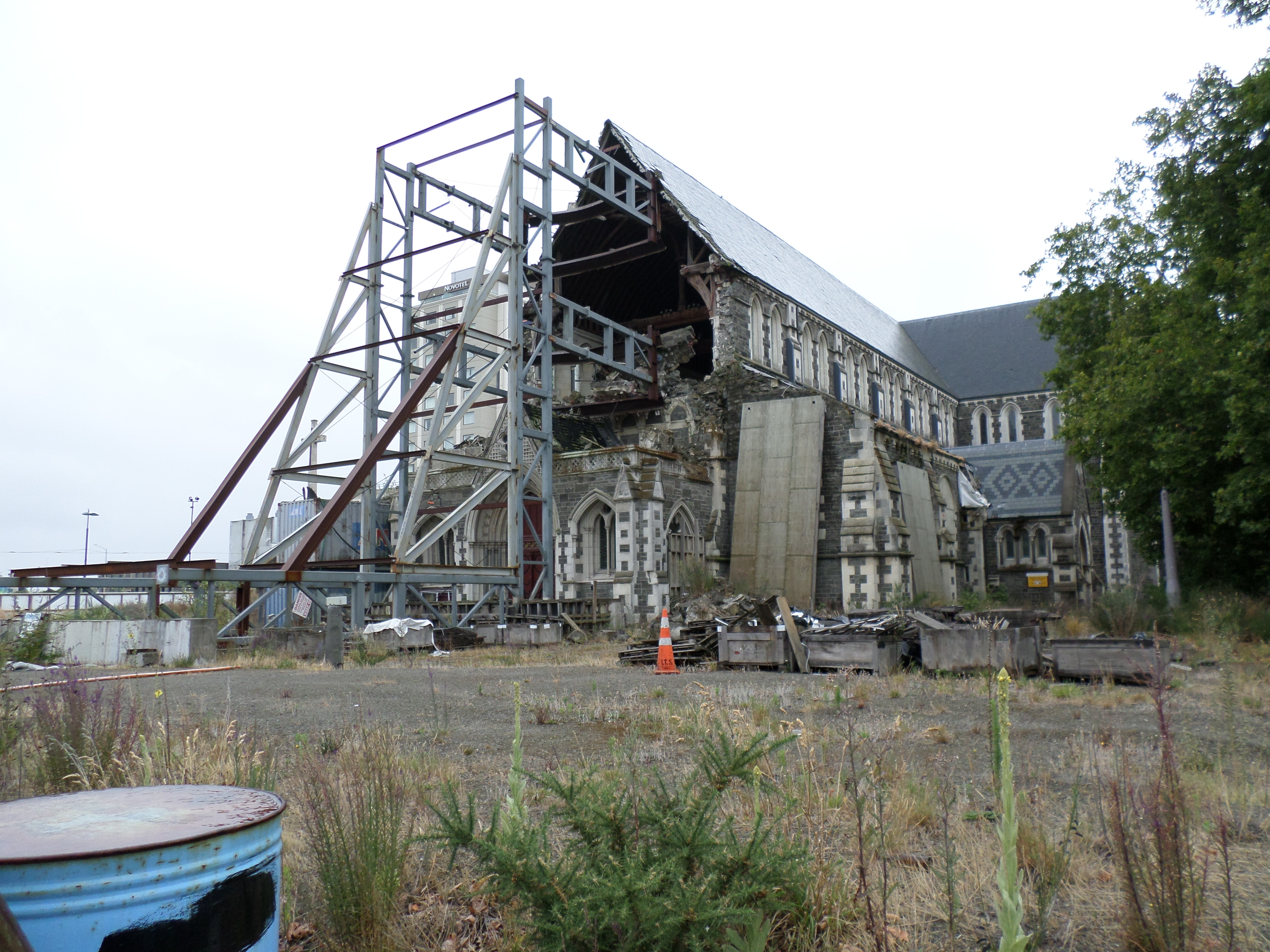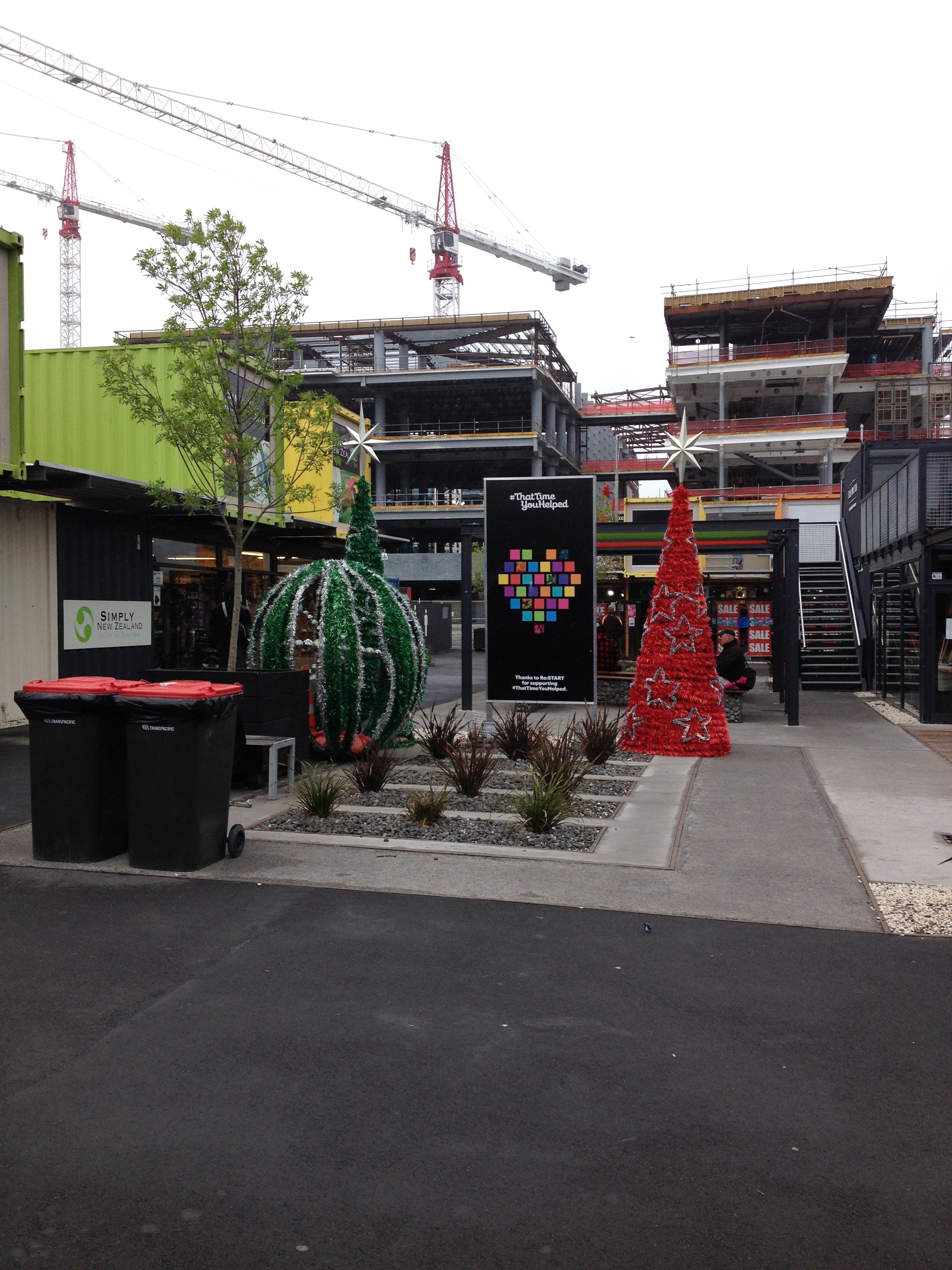 The container mall and what remains of the cathedral