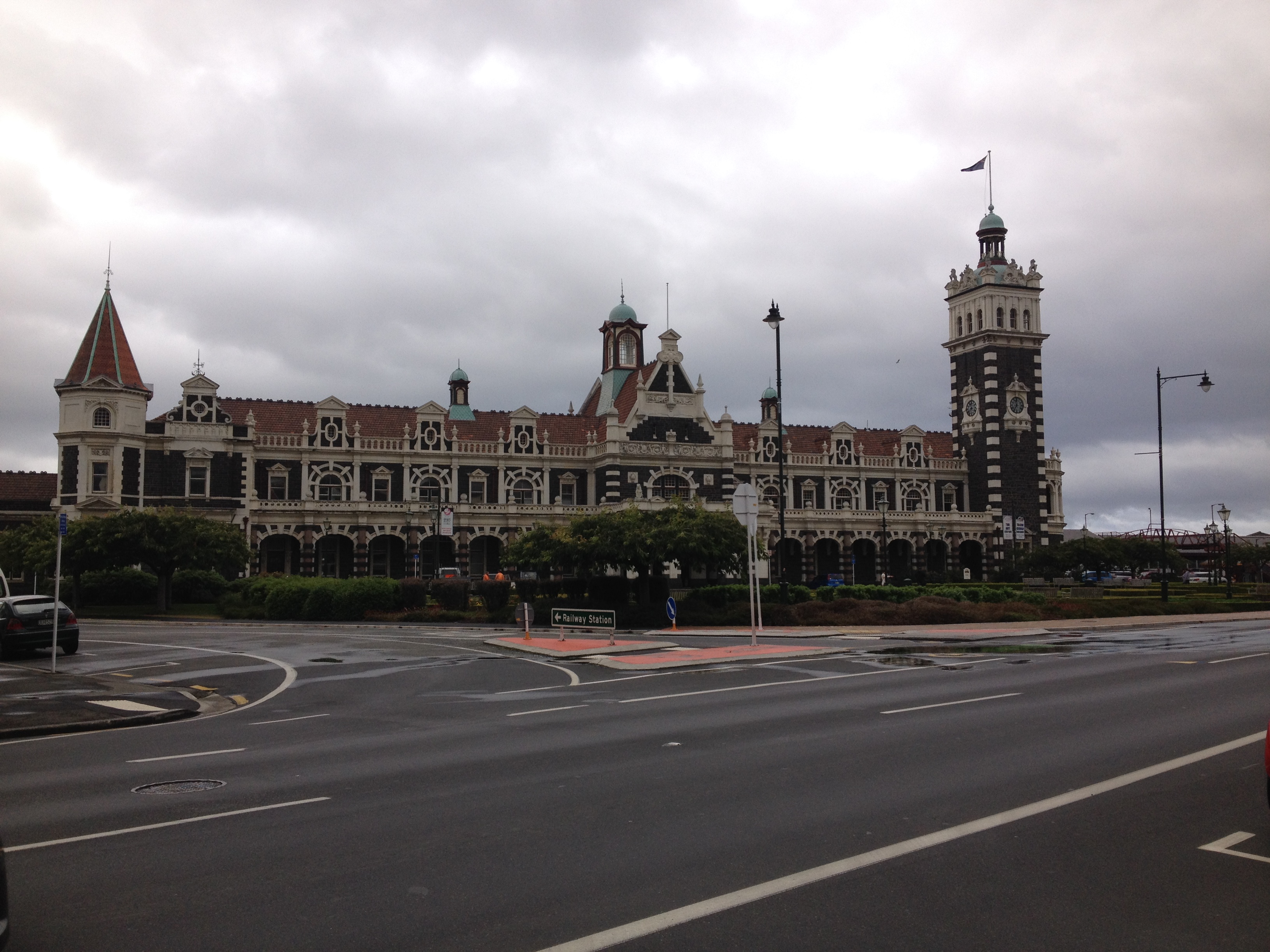 From there we walked to the railway station, a building you have to see if you happen to be in Dunedin.  It opened in 1906, having taken three years to build.  In its heyday, it was the busiest station in New Zealand. The booking hall has an amazing mosaic floor, and a frieze made of porcelain runs around the balcony.  The main platform is New Zealand’s longest and is about 500m long.