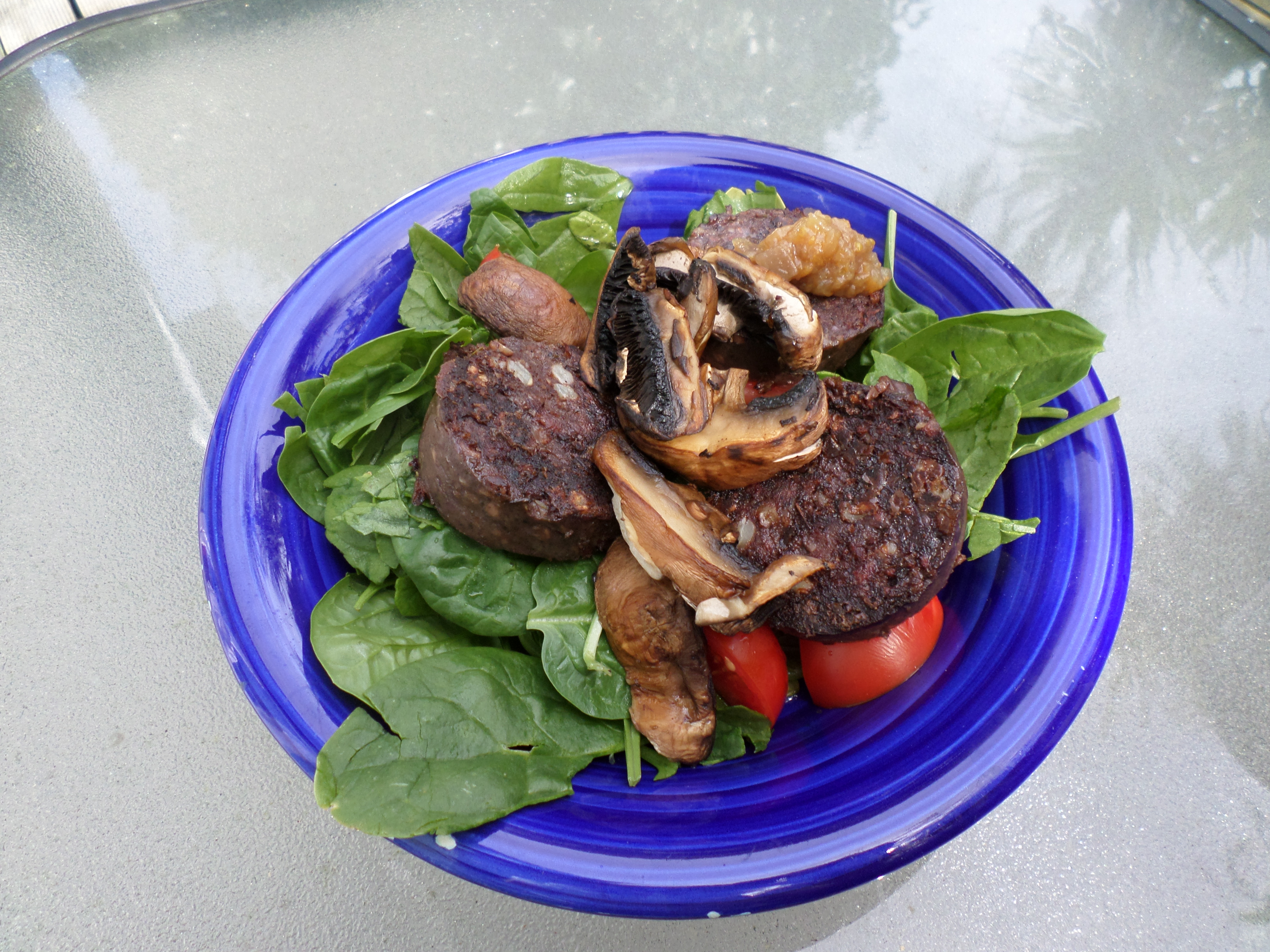 SAMSUNG CAMERA PICTURESBlack pudding, spinach, tomato, mushroom and homemade feijoa and apple chutney