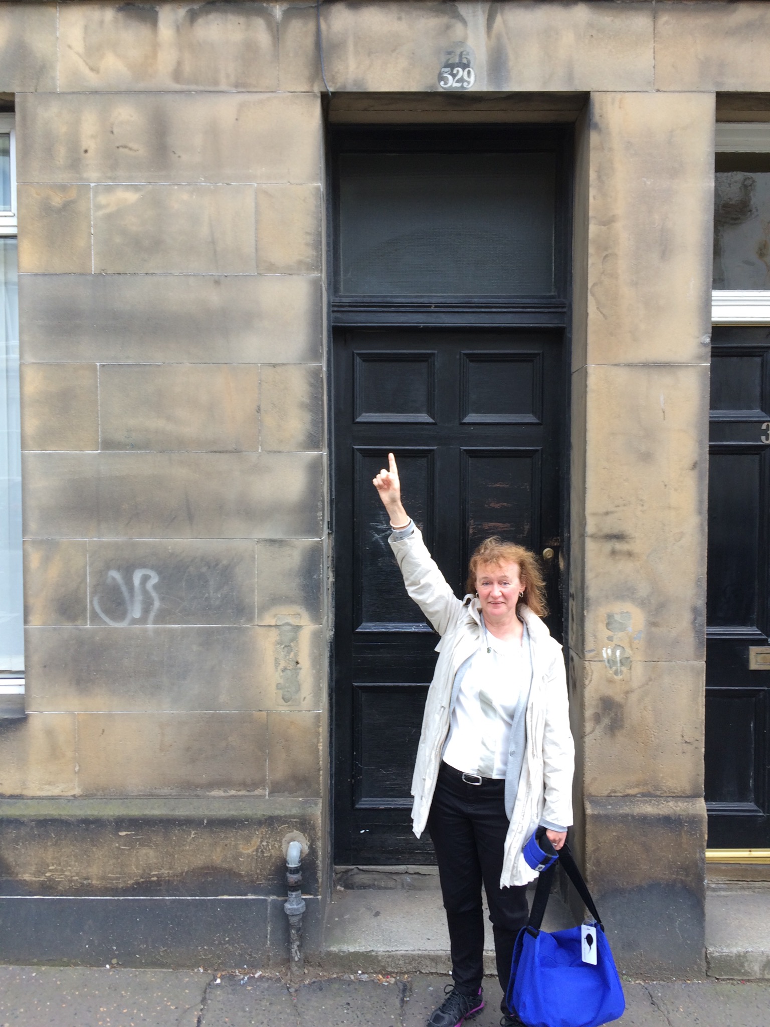 Me outside the flat (or ‘stair’ as they are called in Edinburgh) where I grew up