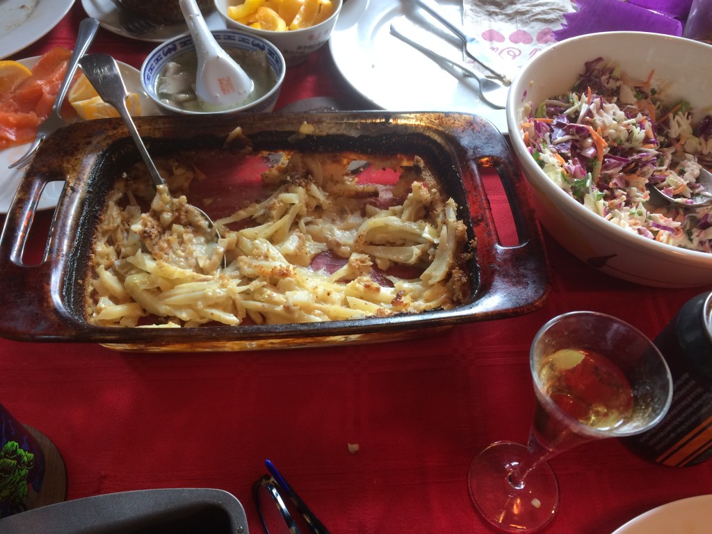 2. I’m not a ham fan at all, years of my parents having it when I was growing up put me off. We had a pork roast with veges and gravy, scallops wrapped in bacon, pavlova, fruit sponge and chocolate log – typical kiwi food.