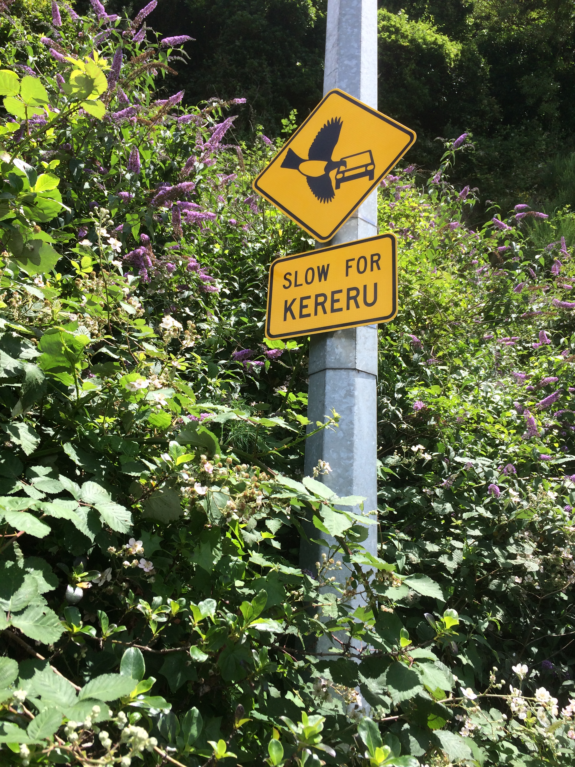 Notes: the picture at the top of the post is a sign warning drivers of low flying kererū.