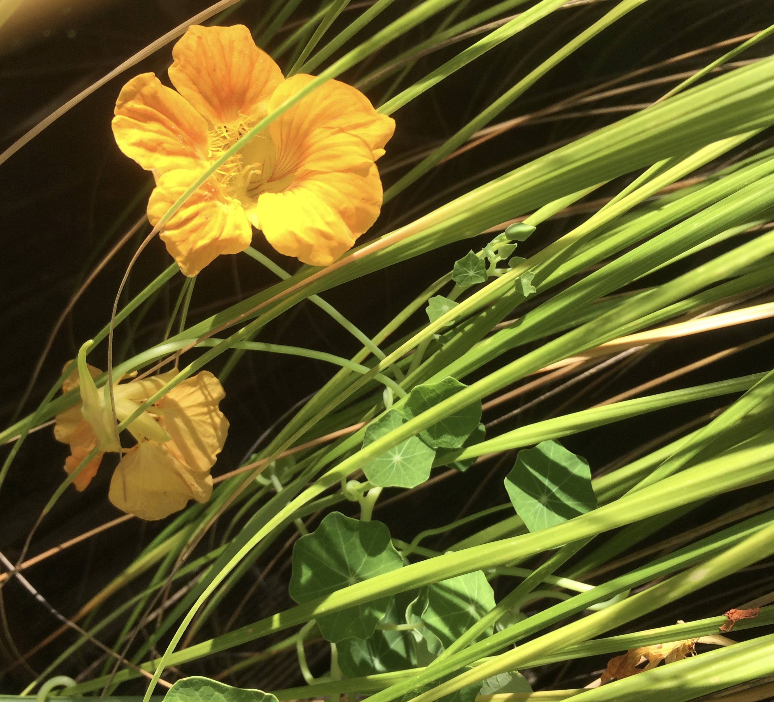 While pottering about outside, I noticed how this nasturtium has wrapped itself around the grass in one of the big pots. Not sure you can see it in the picture, but it means I can’t really move that pot now!