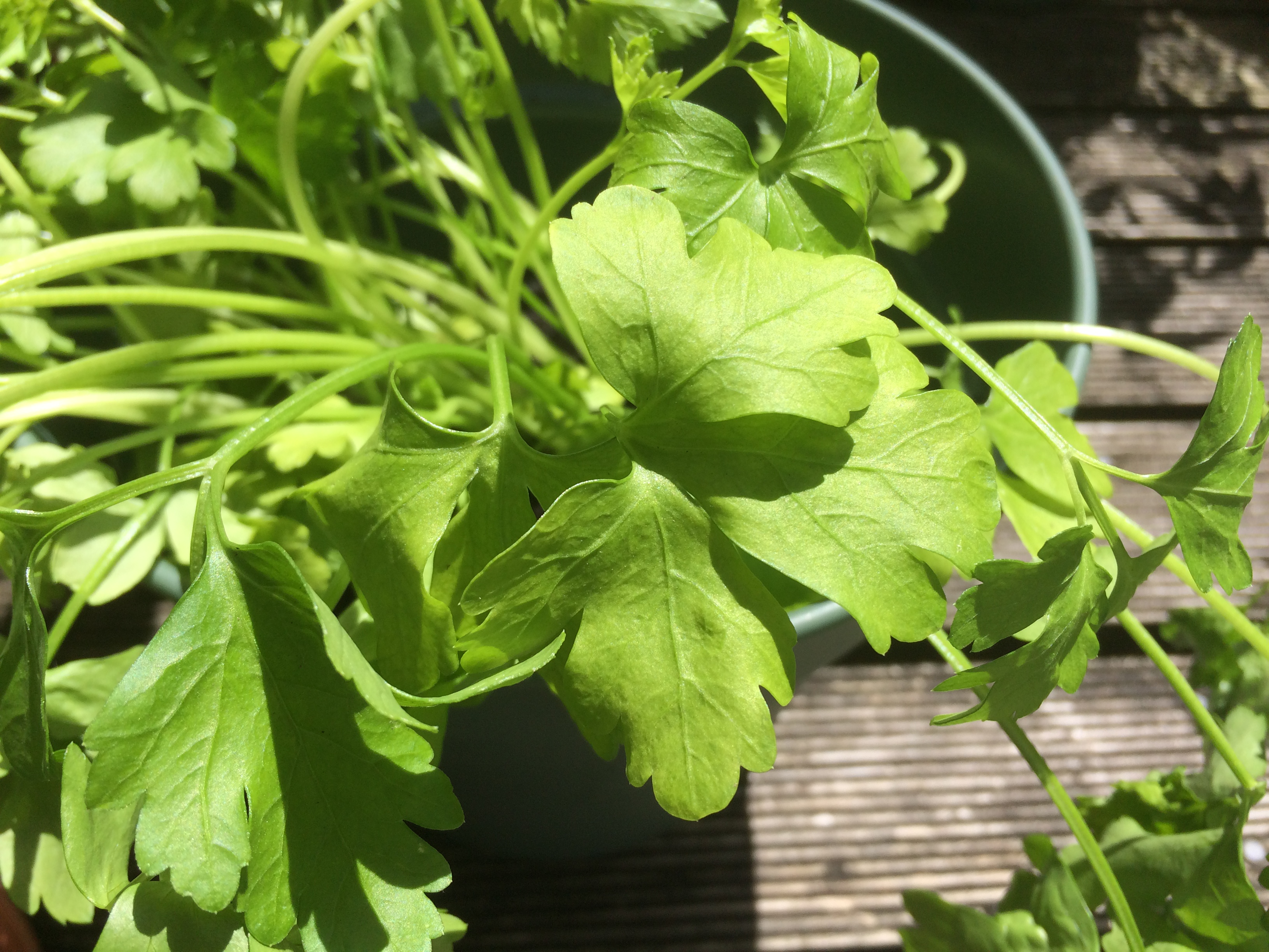 Third on the list is this broad leaf or Italian parsley that I brought home from supermarket and am hoping will grow a little in a nice big new pot. It is looking distinctly droopy though as I type, but as long as I have enough for a tabbouleh I am going to make tomorrow, I won’t cry too much. I would ideally like to have two parsley plants, so fingers crossed.