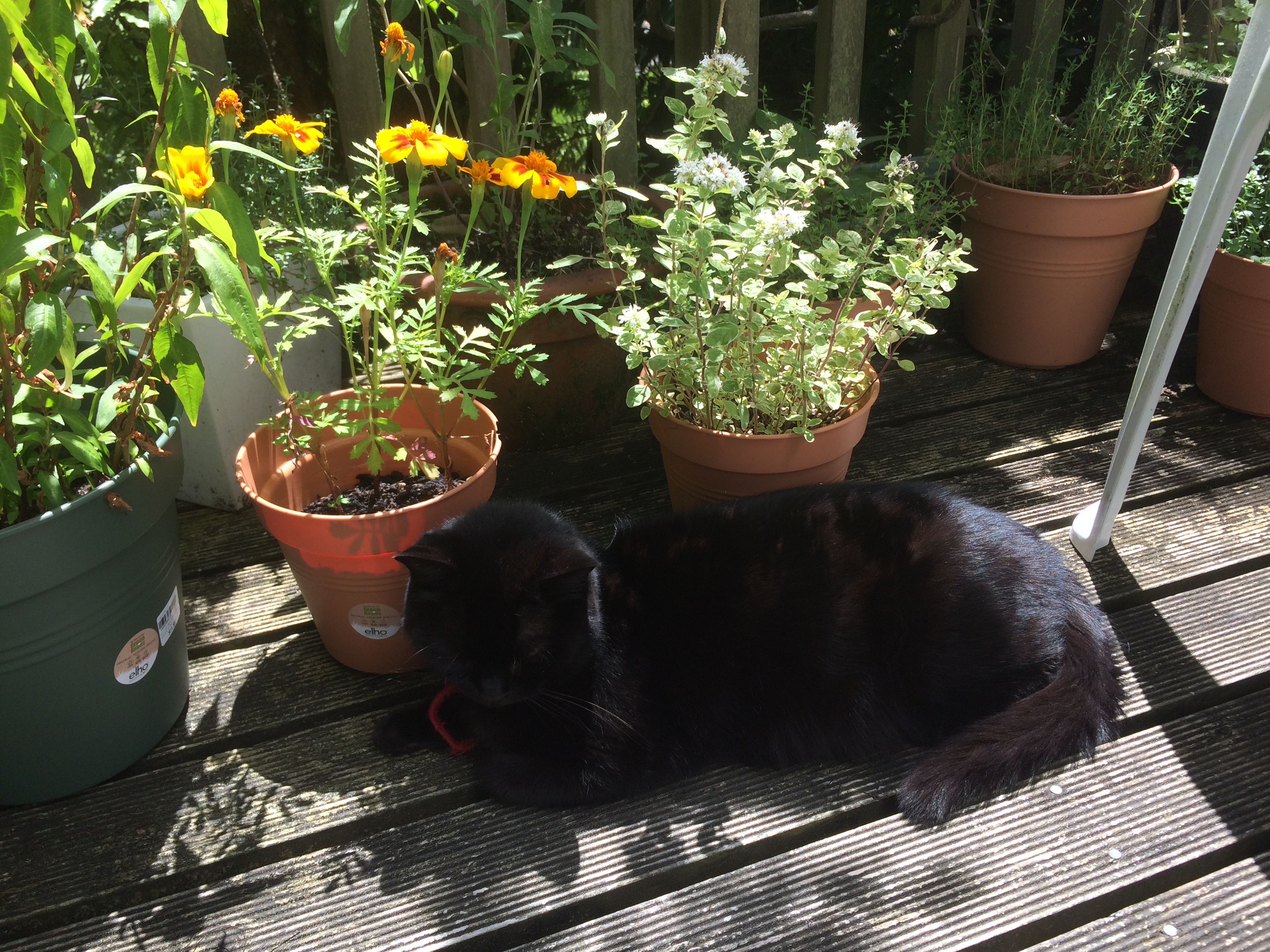 It’s quite warm and dry for Wellington! I love your little black cat resting by the colourful pots.