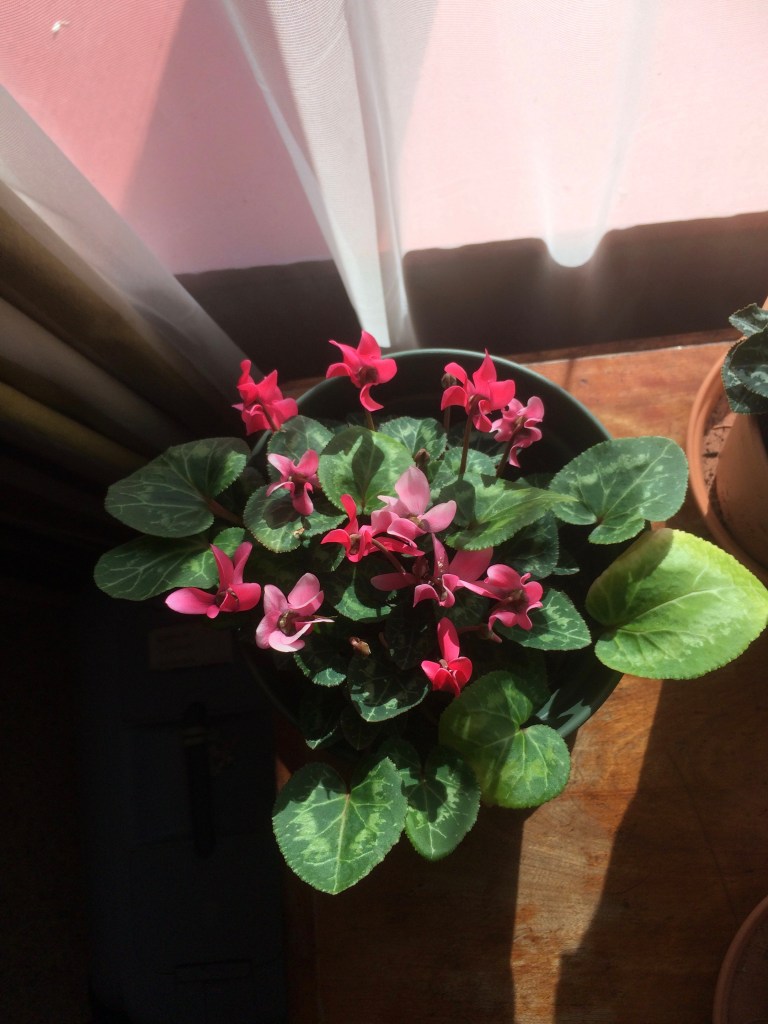 Moving indoors, the two cyclamen plants are looking lovely. We have had a few sunny days, which has meant a bright and warm spot for the plants upstairs.