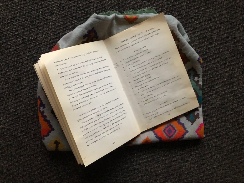 Like most recipe books, there are a couple of things that I return to again and again, in this case, the mushrooms on toast and the best lentil soup ever. The lentils are cooked in stock, with some bay leaves, ginger and a teaspoon of Marmite. Onions, garlic and mushrooms (and I sometimes add carrots), are cooked off separately then added to the soup. The finishing touch is a splash of lemon juice and dash of sherry, which quite frankly is what makes this a special lentil soup.
