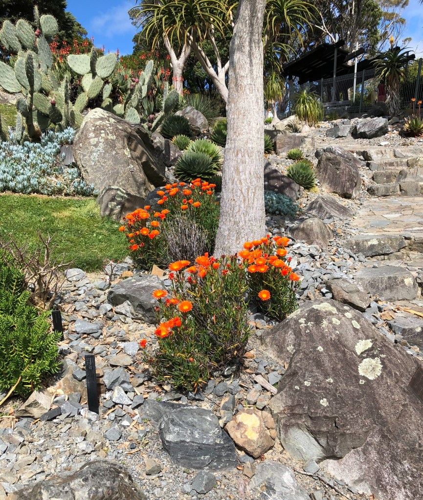Sunday proved to be another lovely day, and as it was Tulip Sunday in the Botanic Gardens, we went for a walk through the gardens from the cable car entrance at the top down to the tulips. It really felt warm as we strolled down the hill, stopping to admire these beautiful flowers in the cacti and succulent area. I’ll post more about the tulips on Wednesday.