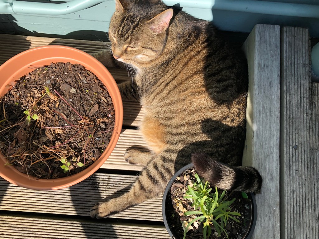 First up, our neighbours’ cat (affectionately known as Fat Cat) came round to help me again…or rather hinder, as he wanted to wrap himself around my legs and sit in places where I wanted to go. He seems to be a regular Saturday afternoon visitor. Luckily, Charlie was out visiting friends…..