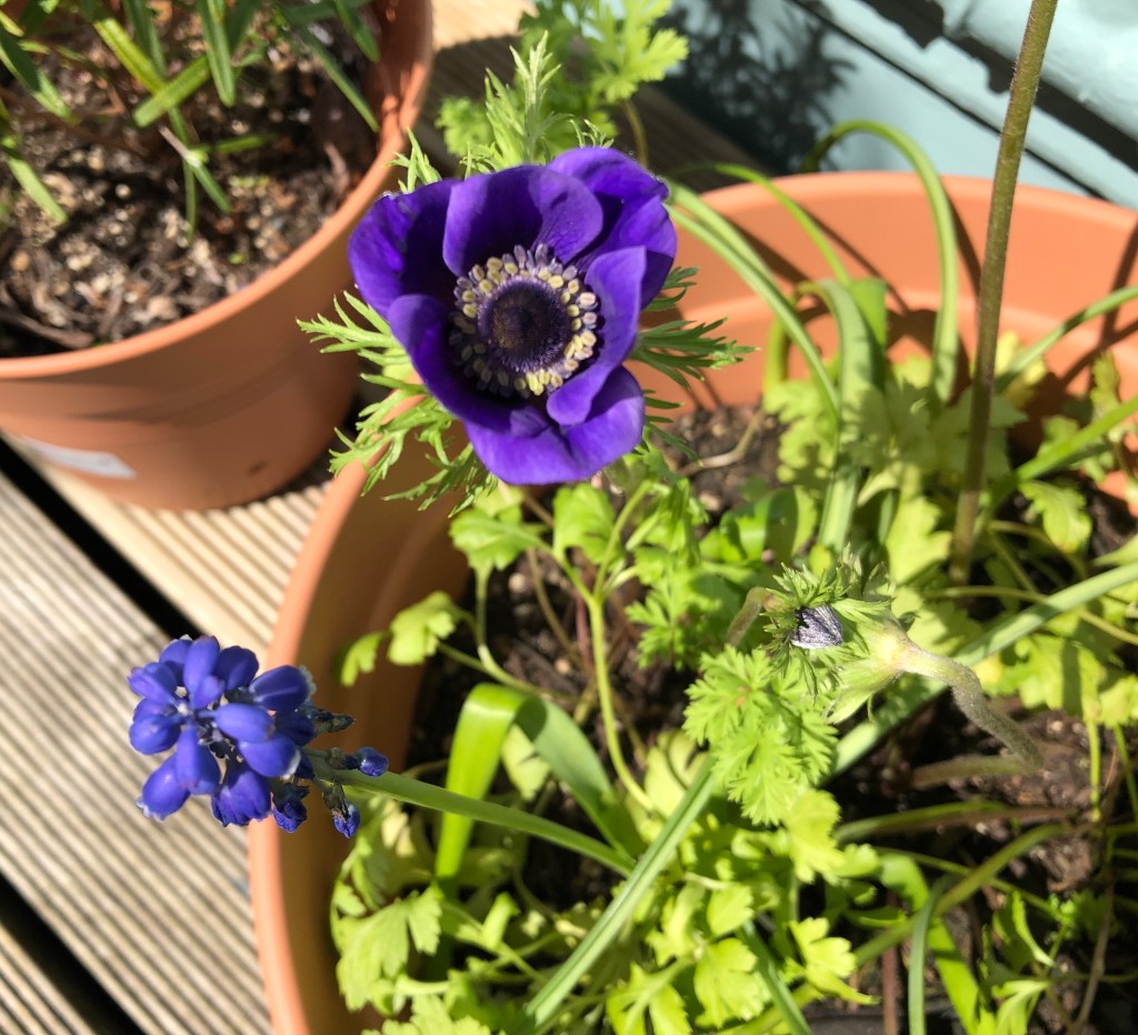 Anyway, in the next couple of weeks, I’ll be getting around to lifting the bulbs and storing them until autumn. In the meantime, there are still anemones, grape hyacinths or muscari and one, solitary daffodil.