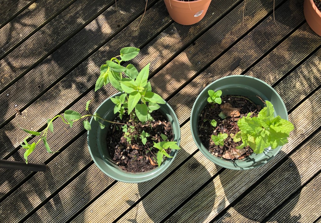Next up, what is growing and what is not. A popped a few odd nasturtium seeds I had lying around around the now weeded lemon tree, and these are now showing signs of life. The two mint plants are looking fine, as is the bee balm bergamot is shooting up, so I hope it flowers. Meanwhile…looks like my last surviving basil is not going to last much longer. We’ll see, but I don’t hold out much hope. I’ve given it a good watering so it might perk up a bit. The hebes are also starting to flower.