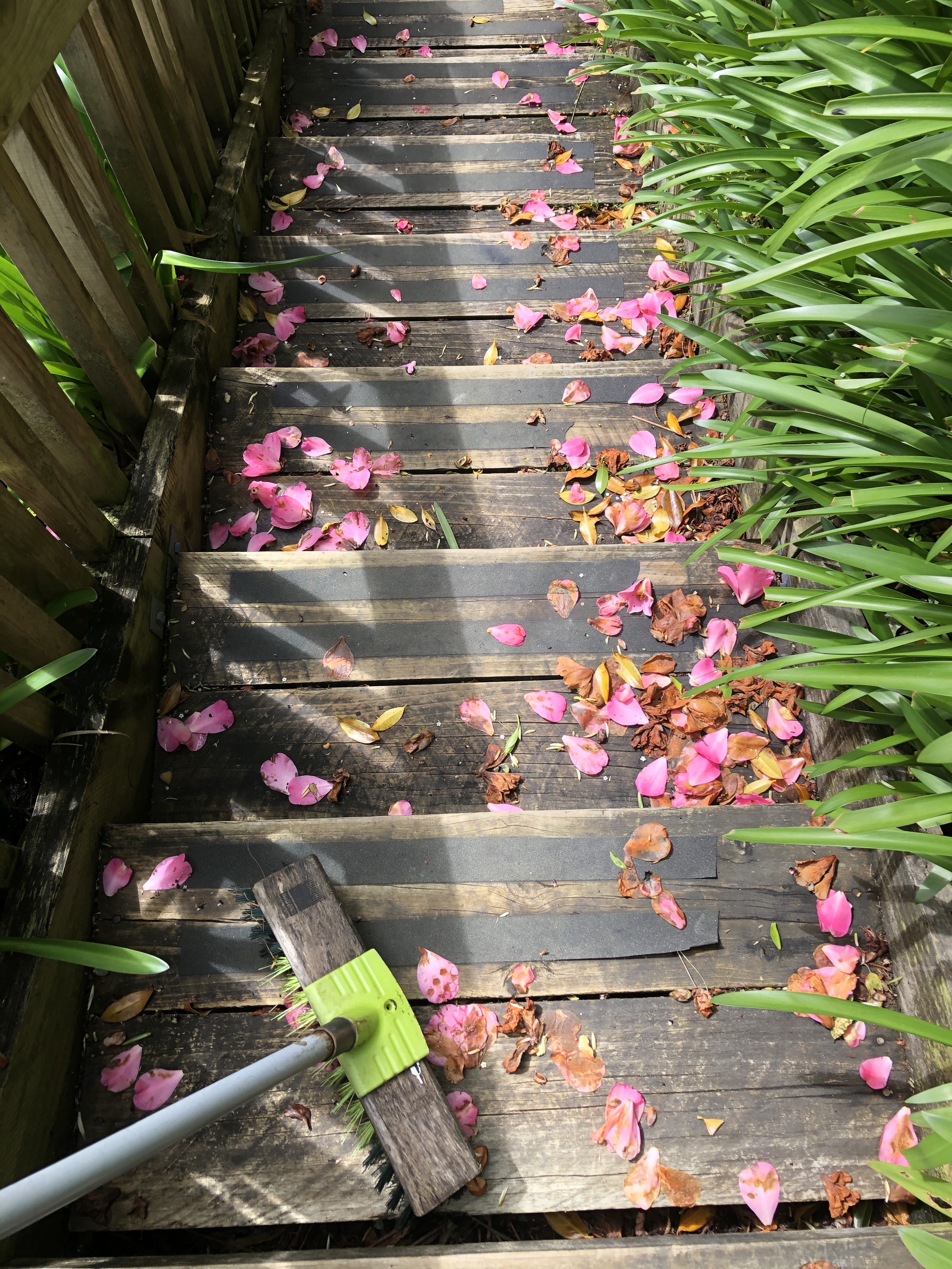 What a pretty picture of your path – this could equally be autumn in the UK with rose petals after wind and rain!