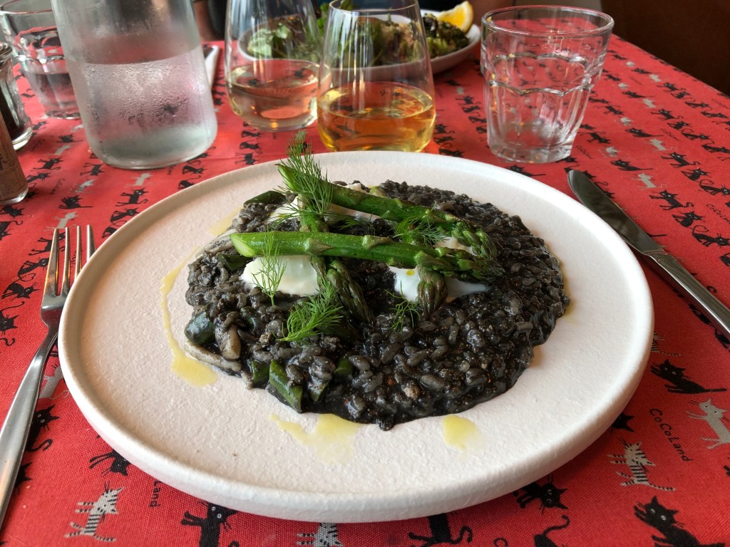 On Sunday, I had to fly up to Hawke’s Bay. I was able to catch up with a friend for dinner, and we headed over to Hunger Monger, where I opted for a delicious risotto with squid and squid ink, asparagus, smoked roe and mozzarella. The restaurant is a really nice casual place with good food and right on the waterfront.