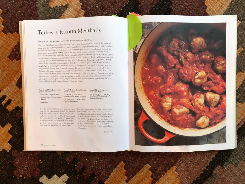 Having spotted some edible lavender during our weekend shop, I could not resist picking some up to make Rachel Khoo‘s lemon and lavender chicken for Monday night’s dinner. It is so simple and so good cold the next day when the flavours have had time to develop. After discovering the passport error, I was so glad that I had meatballs to make…and to eat. The perfect comfort food, and Julia Turshen’s simple recipe for turkey meatballs is one I return to again and again.