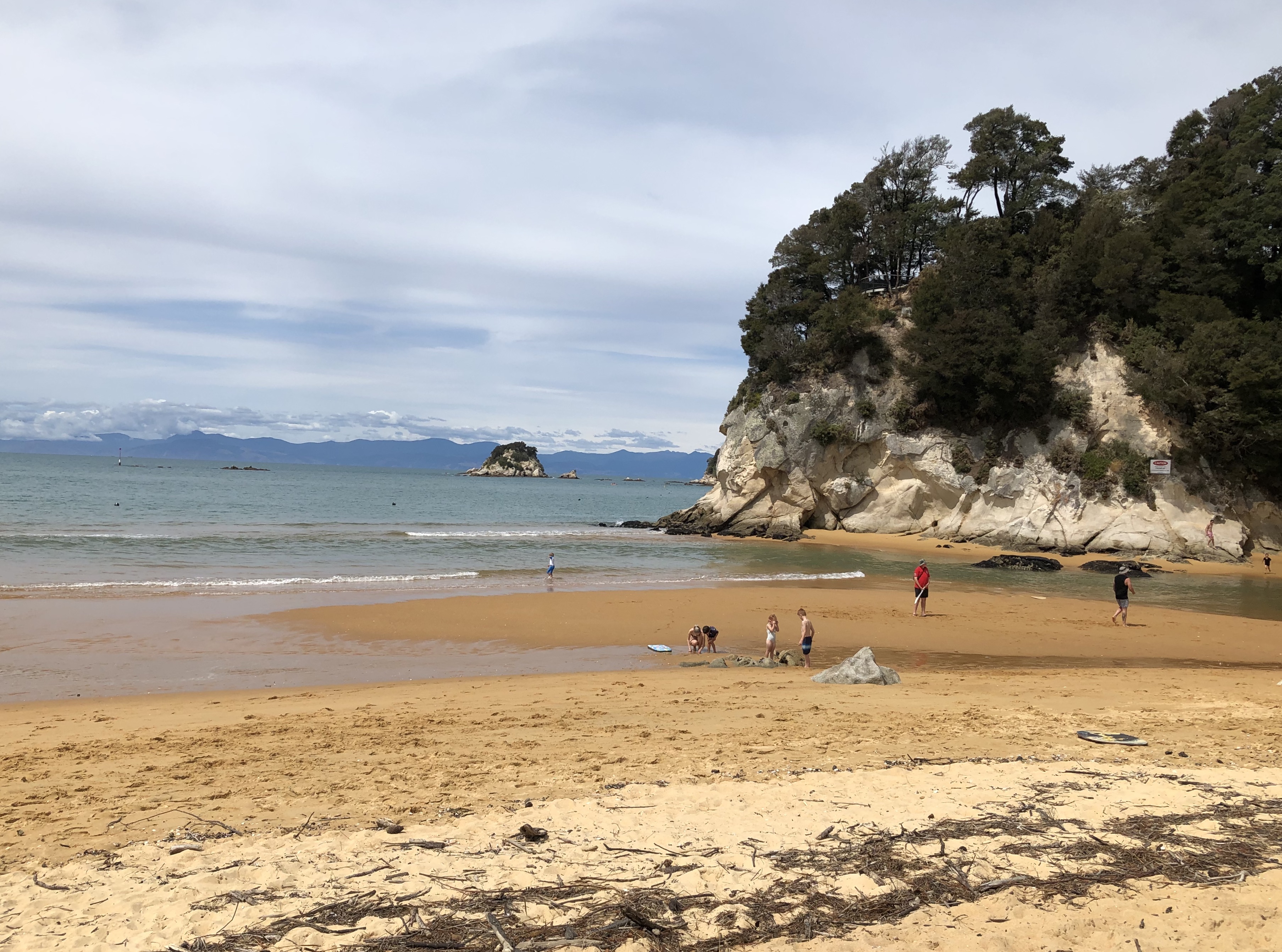 From there we drove further up the coast to Kaiteriteri which is on the southern edge of Abel Tasman National Park. The beach of golden sand is stunning: it really is golden and sparkling. the pictures don’t quite catch just how stunning the colours are, it really is magical place. The featured image at the top of the post is another view.