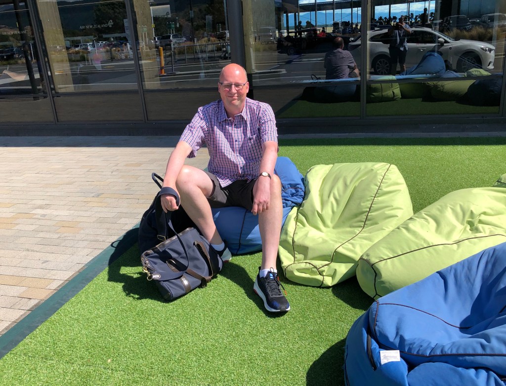 We stopped for a morning coffee at Sweet As Cafe, enjoying sharing an almond cake filled with berries. Unfortunately we then had to head to the airport, and of course had to try out the beanbags at the entrance. No security guards here, just bean bags and sunshine.
