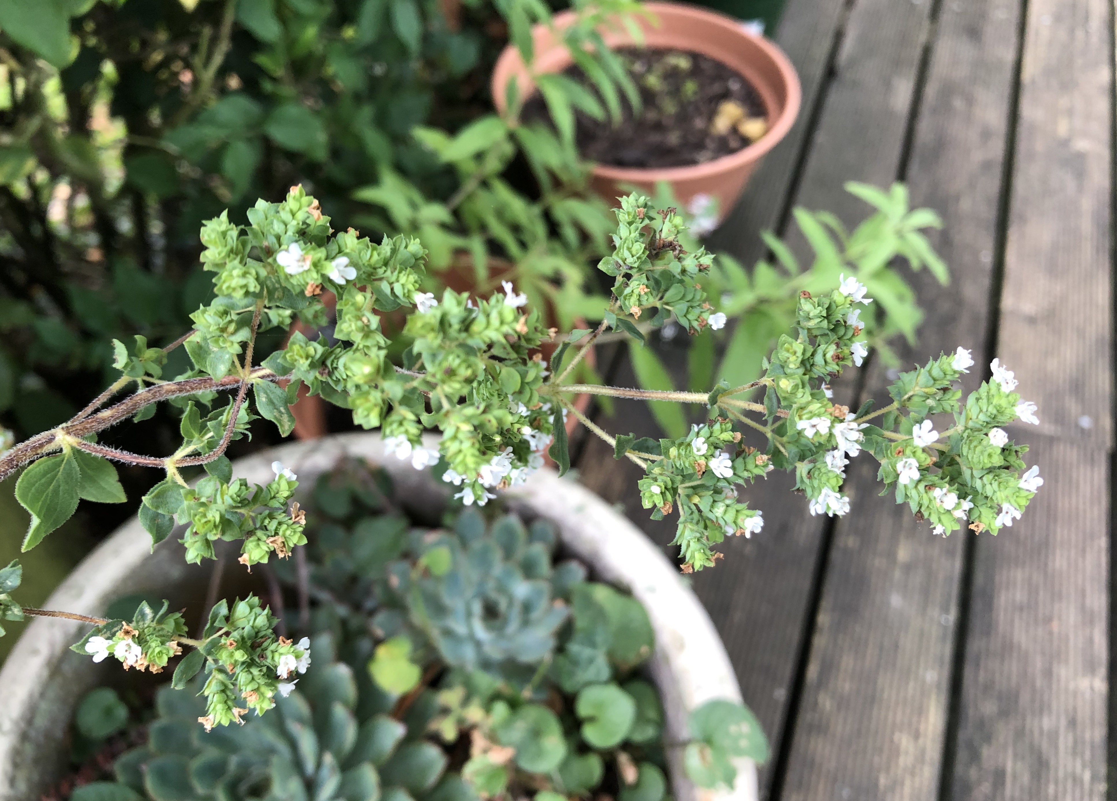 All marjorams are oreganos but not all oreganos are marjorams – or so I read the other day. Whatever, they are all the same family, and my oregano and marjoram plants are looking good, even the old, rather raggedy one that is currently flowering.