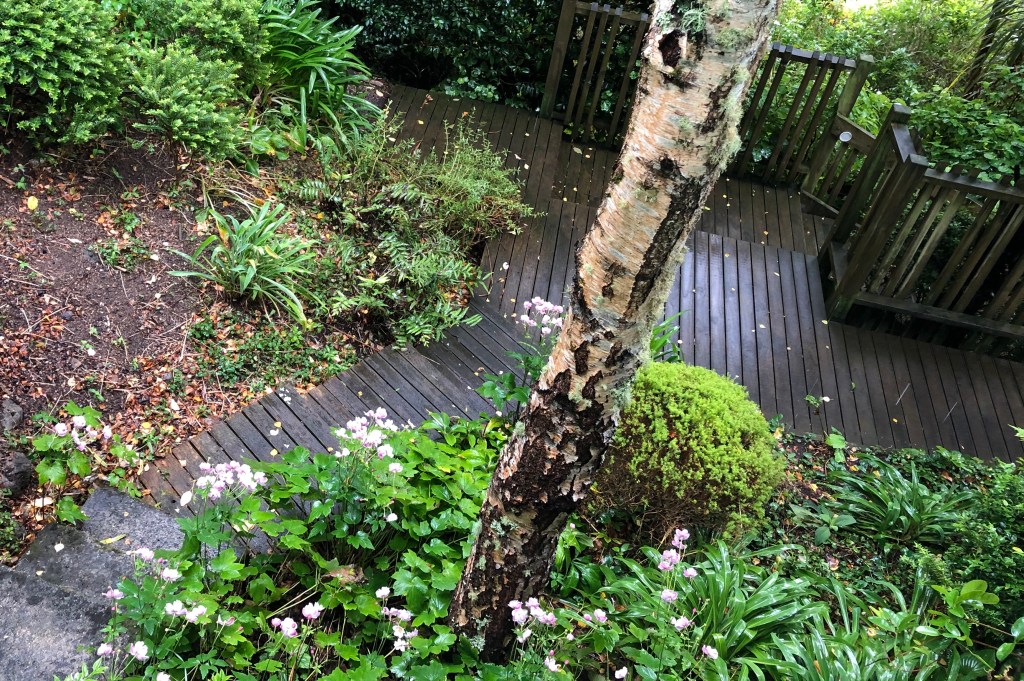 Sorry your rain stopped you getting out, even though it was welcome rain. But you did manage to come up with a great set of photographs! The pots on your deck are lovey and the Japanese Anemones look great even from above! I can almost smell all that wet foliage!