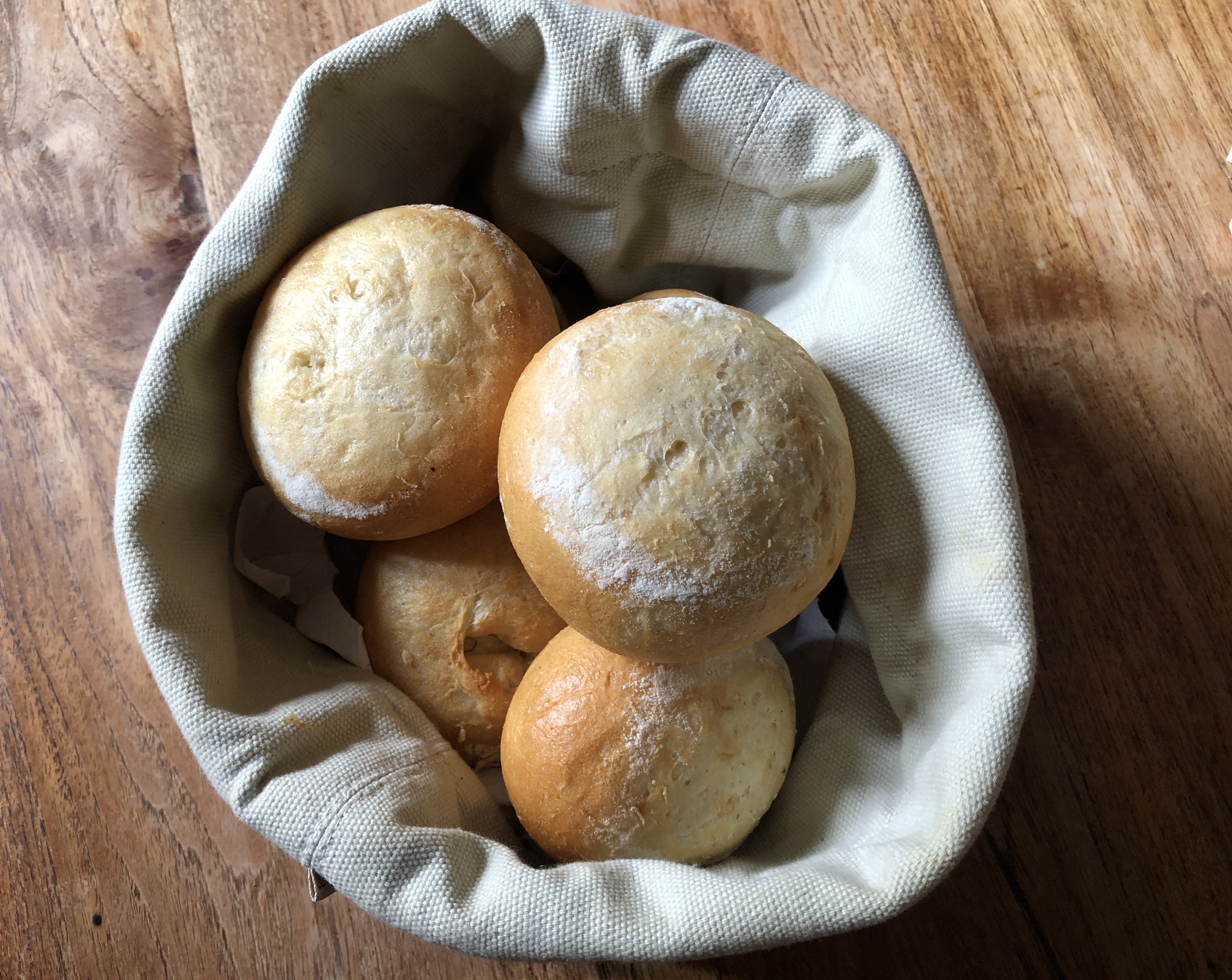 Getting bread deliveries has been a real small pleasures. We’ve had some excellent produce from Arobake, ranging from croissants for Easter Sunday breakfast, to a caraway and rye sourdough for our Easter lunch and these lovely semmel rolls, served warm with soup.