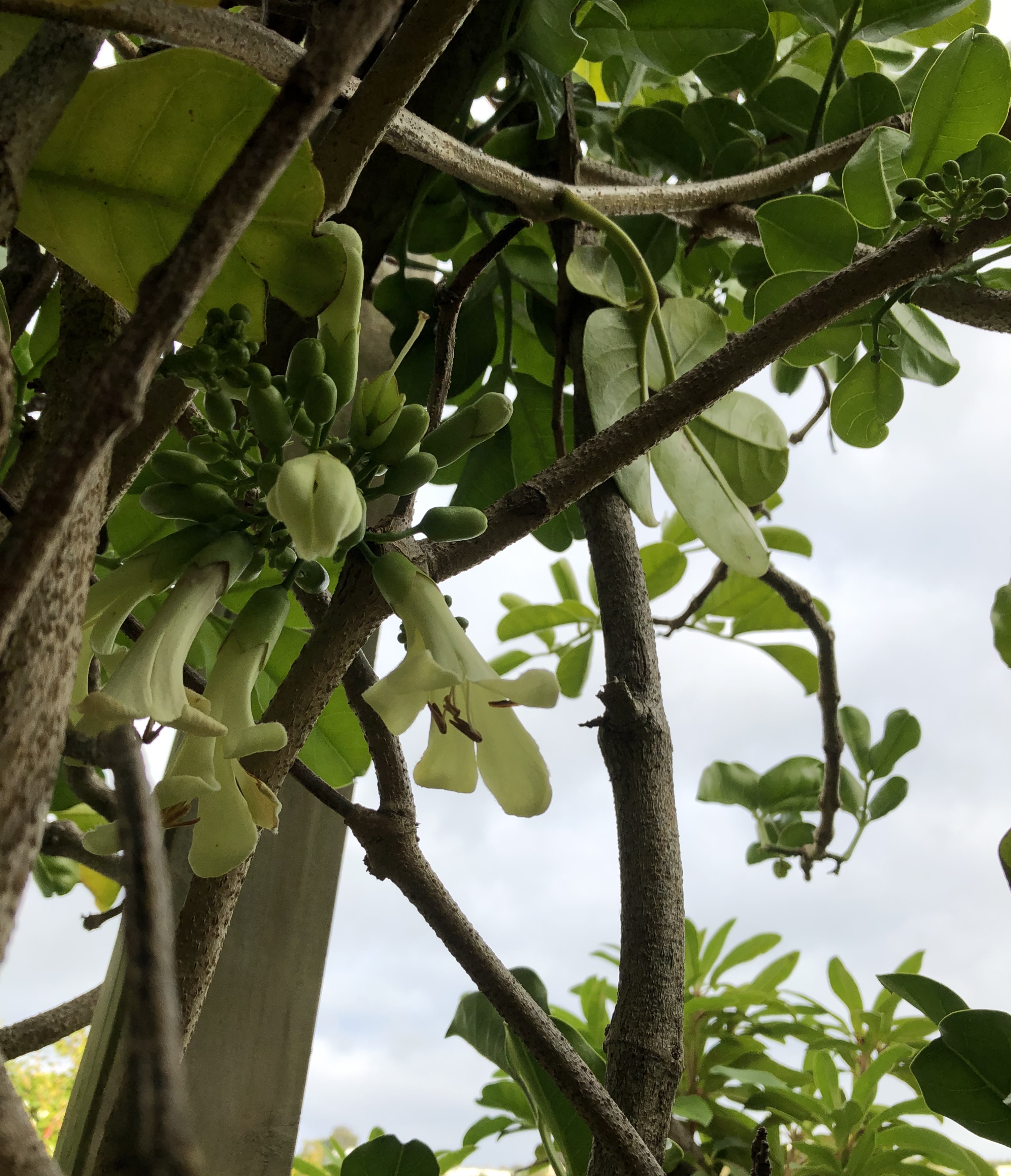 Thank you for showing us the photo of the white flowers of tecomanthe we were talking about last week or the one before. They are very pretty and I guess they must smell wonderful.