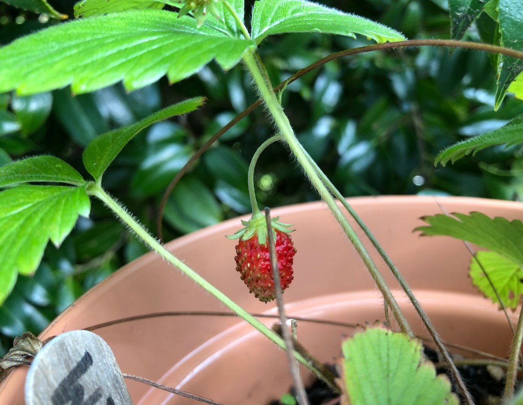 There are still flowers, and I could see a very tiny strawberry, so maybe,.