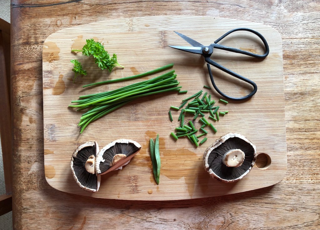 Getting ready for lunch – parsley and tarragon from the pots outside