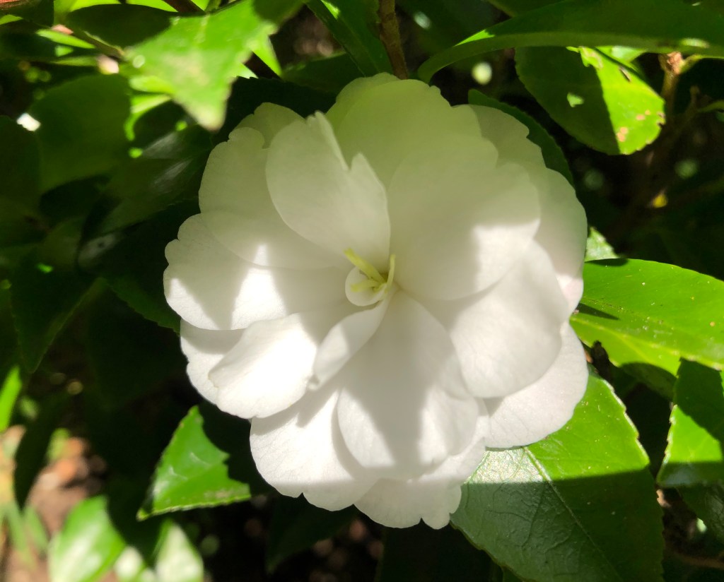 I hope it isn’t cheating to treat the white camellia as different from the pink? The bush is looking so gorgeous right now, with a mix of these gorgeous white flowers and pink buds.
