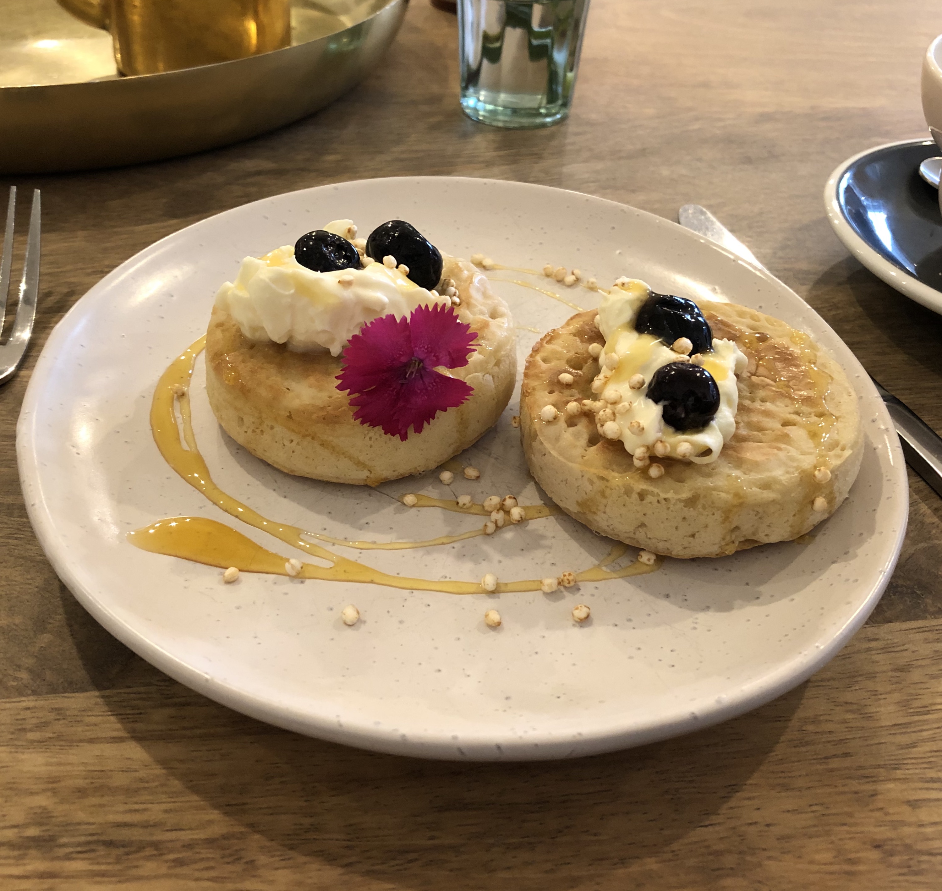 Well, there was pizza on Thursday evening for the first time in many a month (my favourite seafood one), there was drinks with friends on Friday evening at Glass (Lillet Spritzes all round, a cocktail of gin, Lillet blanc, tonic and lemon), there were crumpets at Squirrel on Saturday morning and eggs and that Swedish speciality, Kalles Kaviar, for Sunday breakfast on fresh bread. There was also homemade lasagne on Saturday night, but no picture I am afraid.