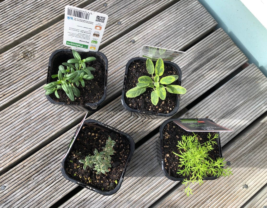 Last Sunday, we went to the garden centre as I wanted a couple of plants to brighten up what is being turned into an office space come spare bedroom now that my step-son has returned to Denmark. I picked up a pot of hyacinths, which had such a strong smell I have had to put them outside, another orchid and a couple of cacti. Of course, I could not help but browse the herb section and came home with a dill (good luck with that I hear you cry!), a hyssop, a silver thyme and a variegated sage. We’ll see how these all fair in the weeks to come.