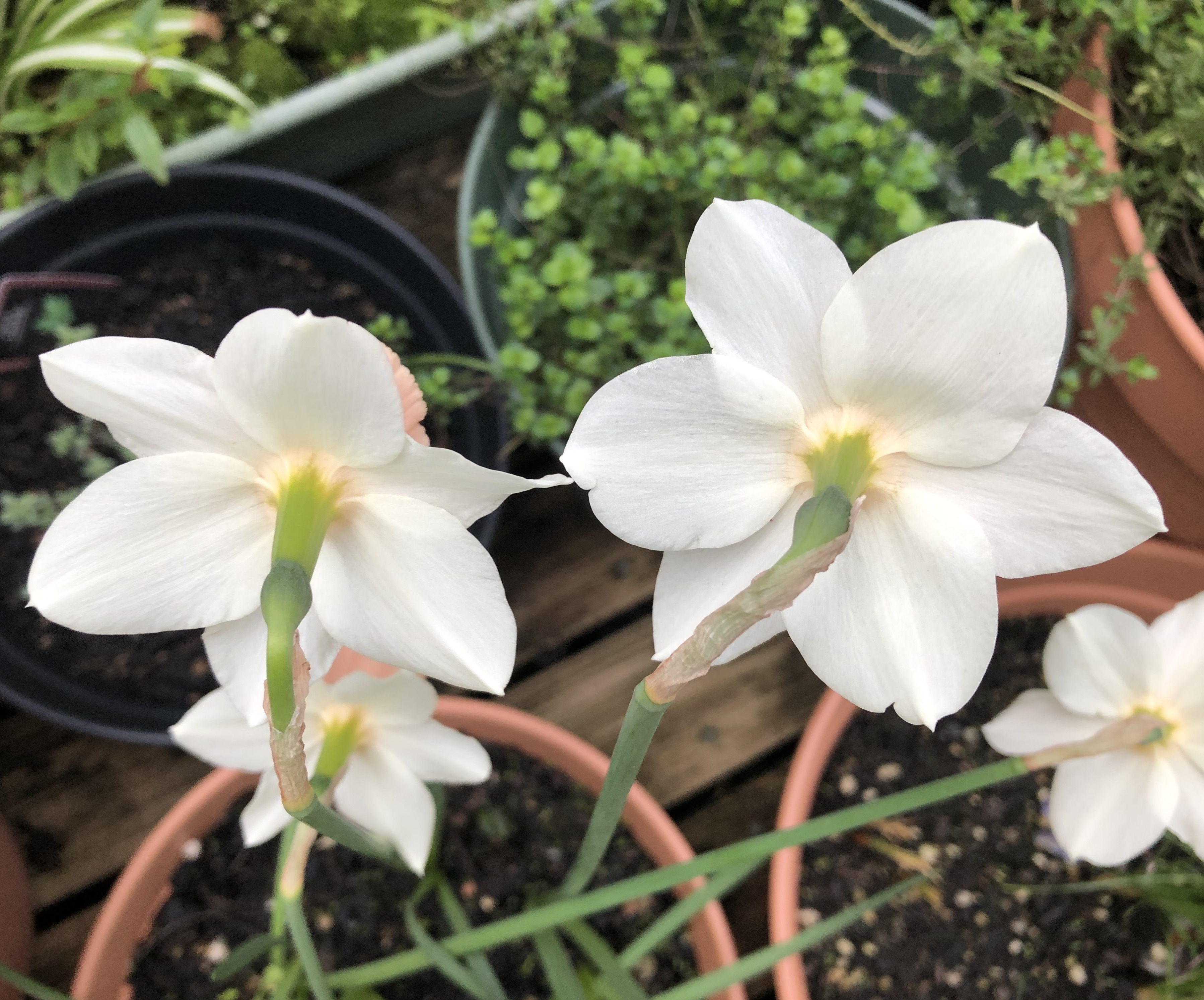 Your spring flowers are all looking great! I particularly like the daffodil with the peachy coloured trumpet! It will be wonderful if the white Muscari bloom! Here’s hoping!