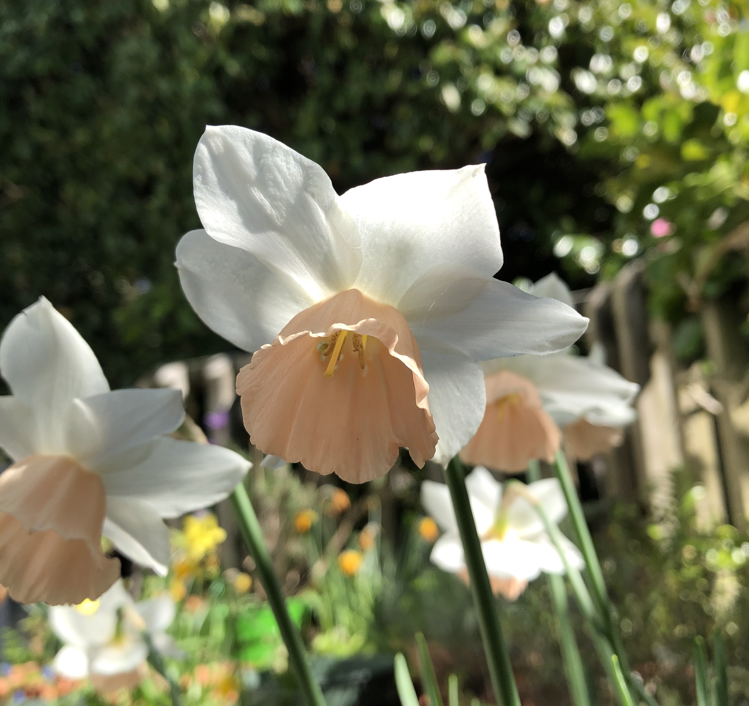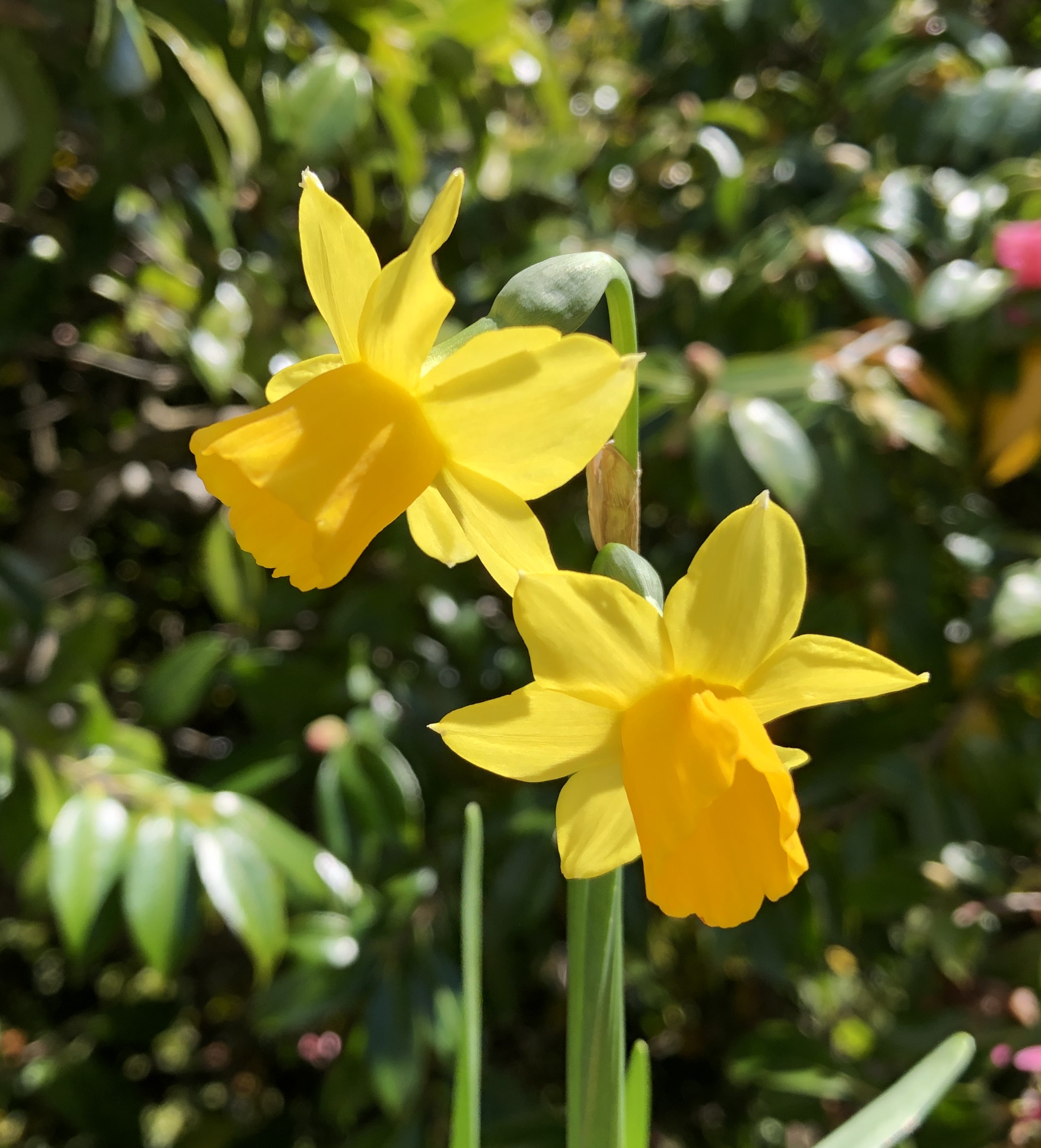 So let’s start with one of the symbols of spring, the daffodil. While the early bloomers are well past their best and in need of tidying up, there are still a lot of golden yellow out there. The jonquils survived the stormy weather, and are still looking stunning.