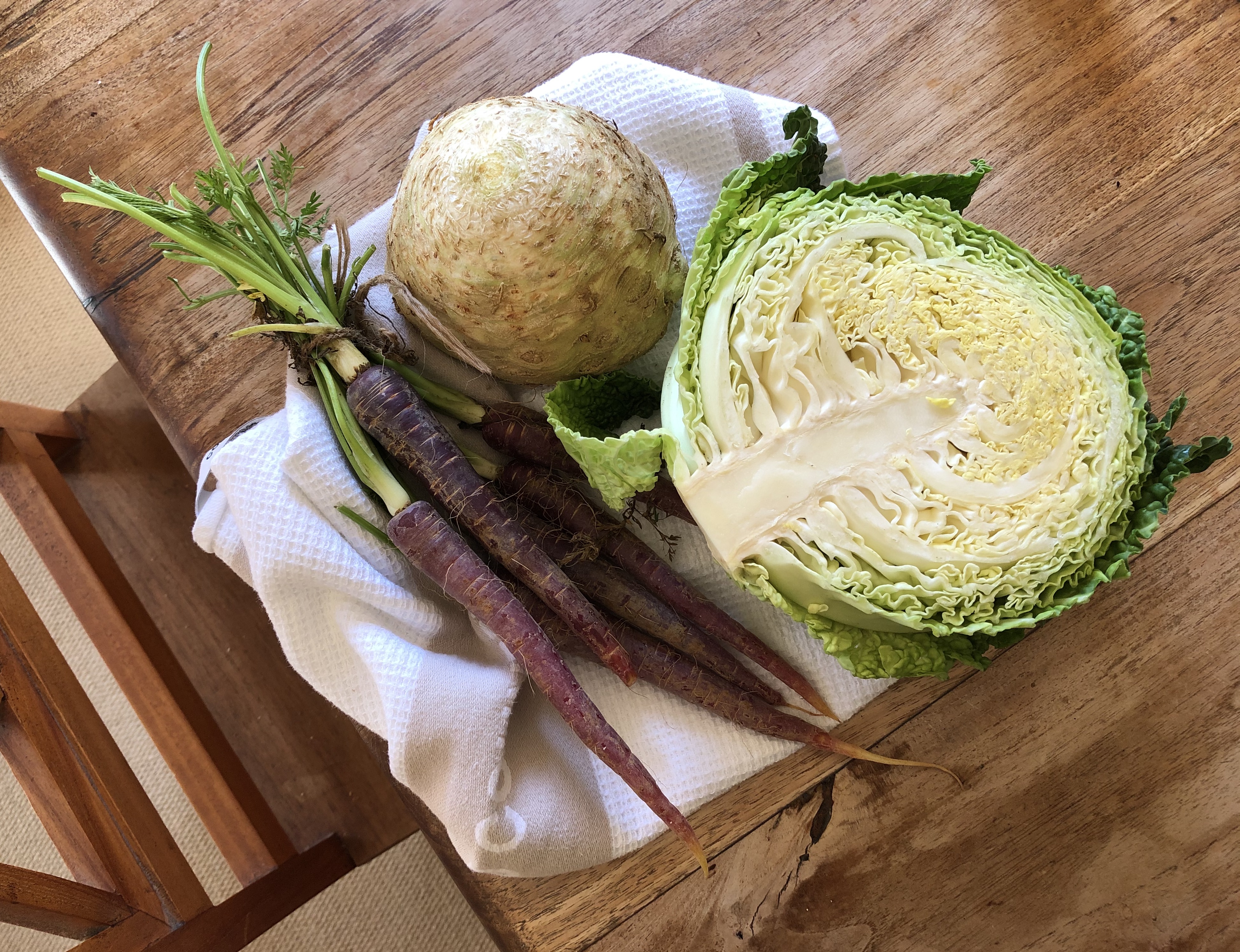 It was lovely to see the first asparagus on sale. We ate our first on Saturday, and there will no doubt be more to come as the season goes on. There was celeriac to add to potato to make mash just a little more interesting, some little purple carrots and half a Savoy cabbage, and rhubarb and oranges to make a compote. We are still getting bread delivered on Saturday mornings – this week there were croissants for breakfast, ciabatta, and bread for weekday breakfasts and lunch. I love opening the box and seeing all the freshly baked goods.