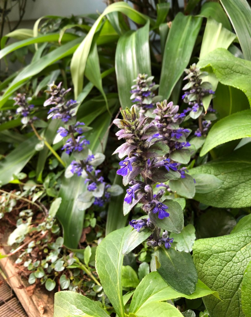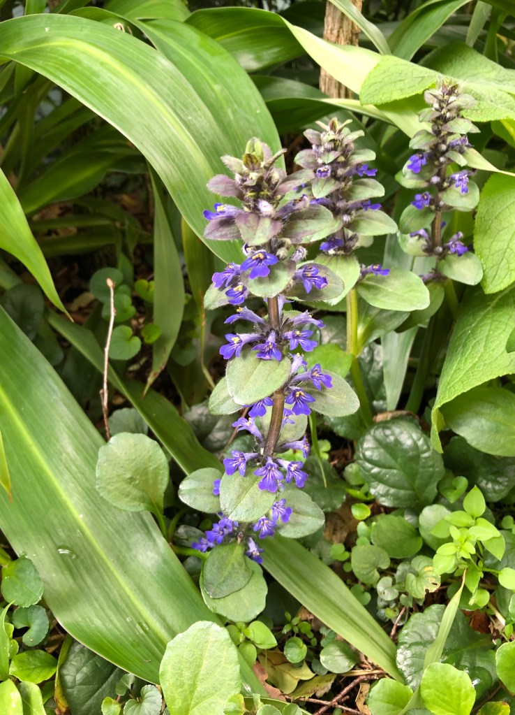 The first of the ajuga are flowering, providing a lovely splash of blue in amongst the green. We have a decent patch at the side of the house around the base of the mahonia and in between the clumps of hellebores.