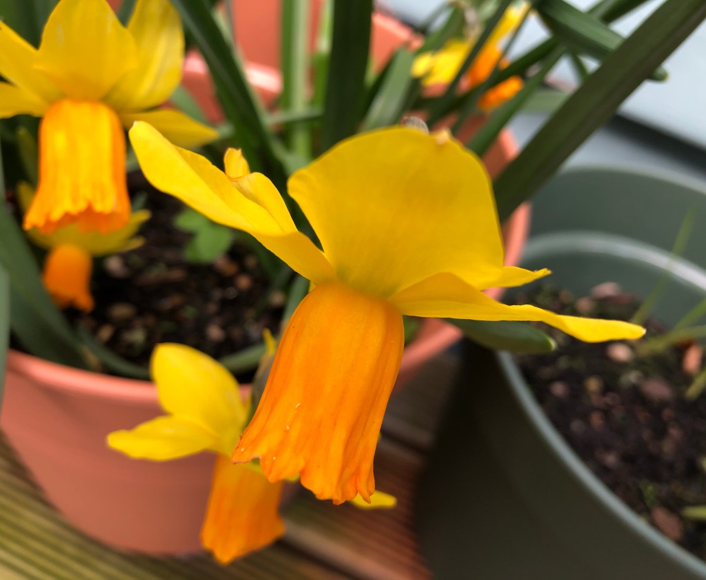And so to the last few daffodils brightening up the front of the house. I have so enjoyed our display this year, and am so tempted to get even more bulbs next year…maybe! The jonquils are still standing strong and firm, despite the wild weather, and will definitely be on the look out for more of these next year (space permitting…we don’t need to sit outside, do we?).