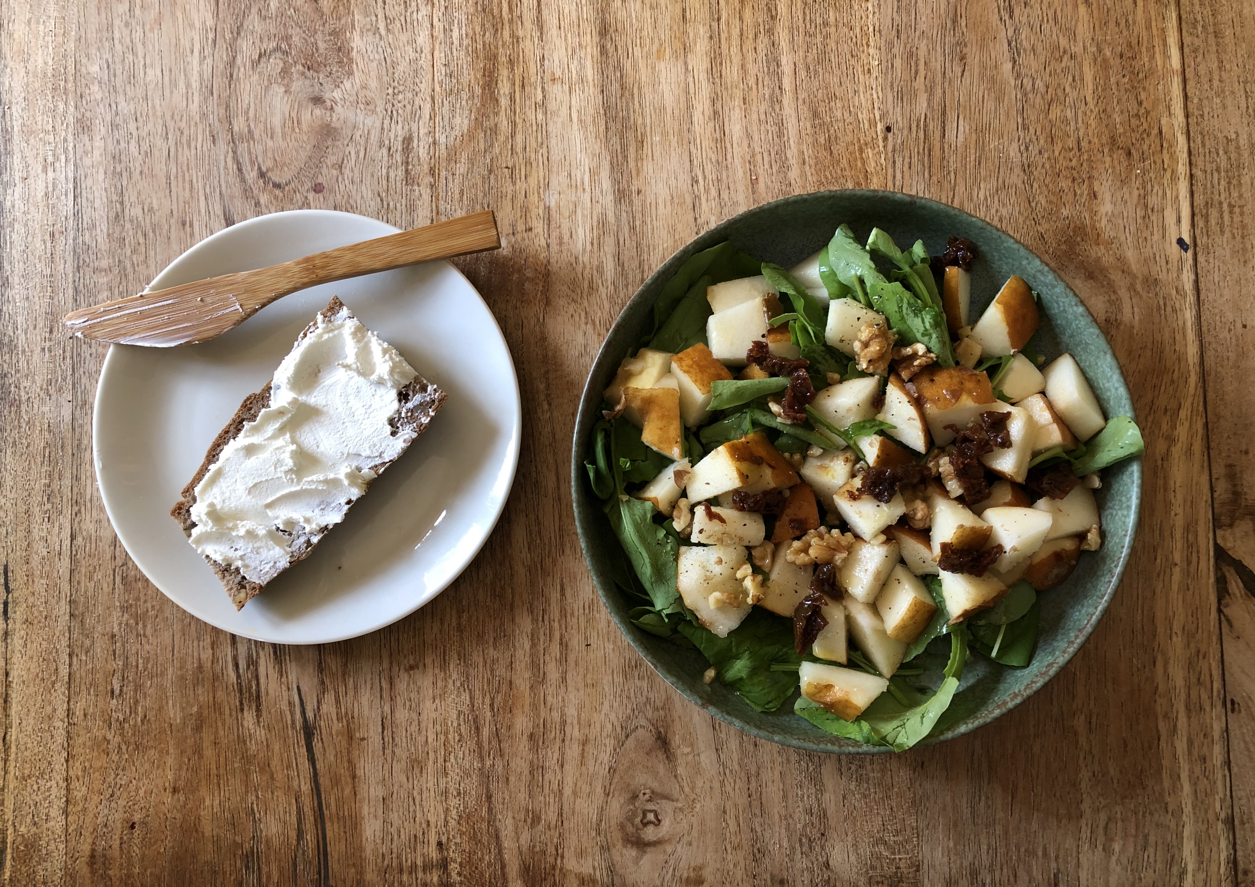 Broccoli, cranberries, almond, seeds, lemon dressingEgg mayo with dill, cos and cucumber on walnut and honey breadRocket, pear, walnut, sun-dried tomato, seedsLeftover pasta with mushrooms and spinach and a bit of salad with rocket and parmesanBack to the office…and lunch in a box