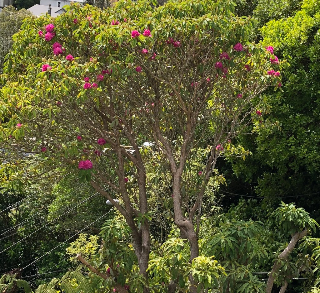 Finally, and also in the featured image at the top of the post, the rhododendron, which is always a little later than most of the others around where we live. There are a fair few flowers already, and a lot of buds, so hoping for a decent display. It isn’t the healthiest of trees, but comes back year in year out with some gorgeous flowers. The picture below was taken hanging out of the bedroom window, the one at the top from the decking.