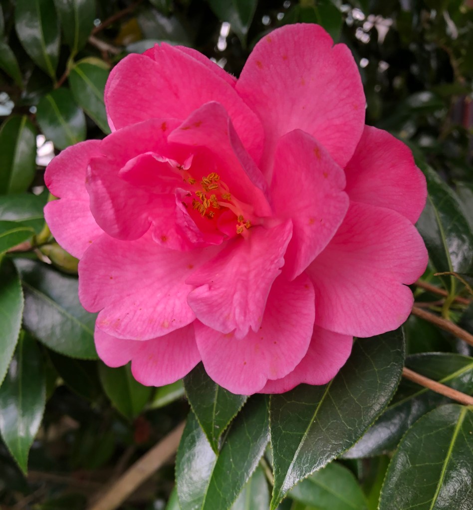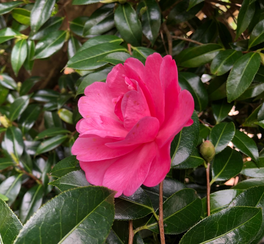There are still quite a few camellias around particularly on the bush in front of the house. There are a few white ones left too, but it is the pink ones that are still adding colour to the garden.