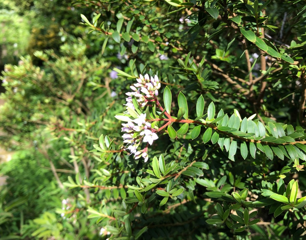 There are a few well established hebe around the house, some of which are flowering now. The picture below doesn’t really get the subtle colours of the flowers, but you get the idea!