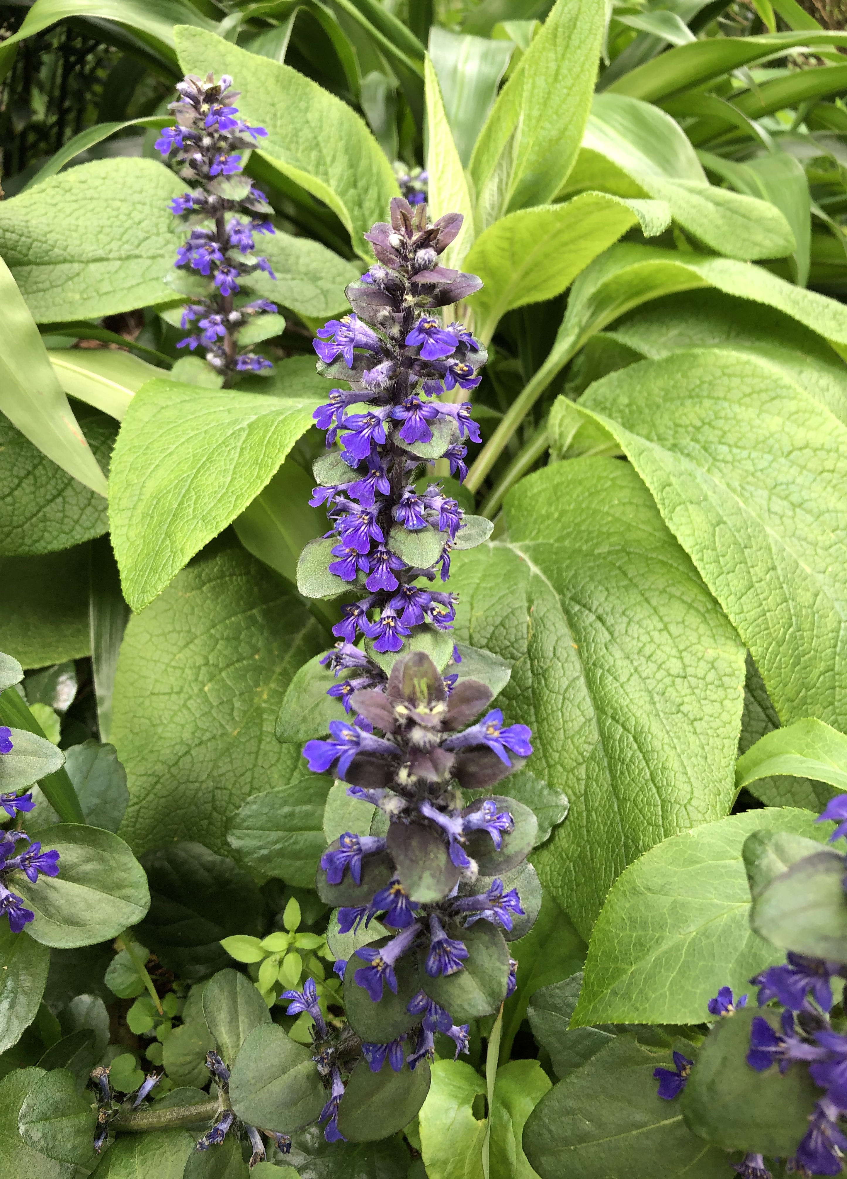 My ajugas have red leaves but the flowers are (were) the same. Excellent ground cover