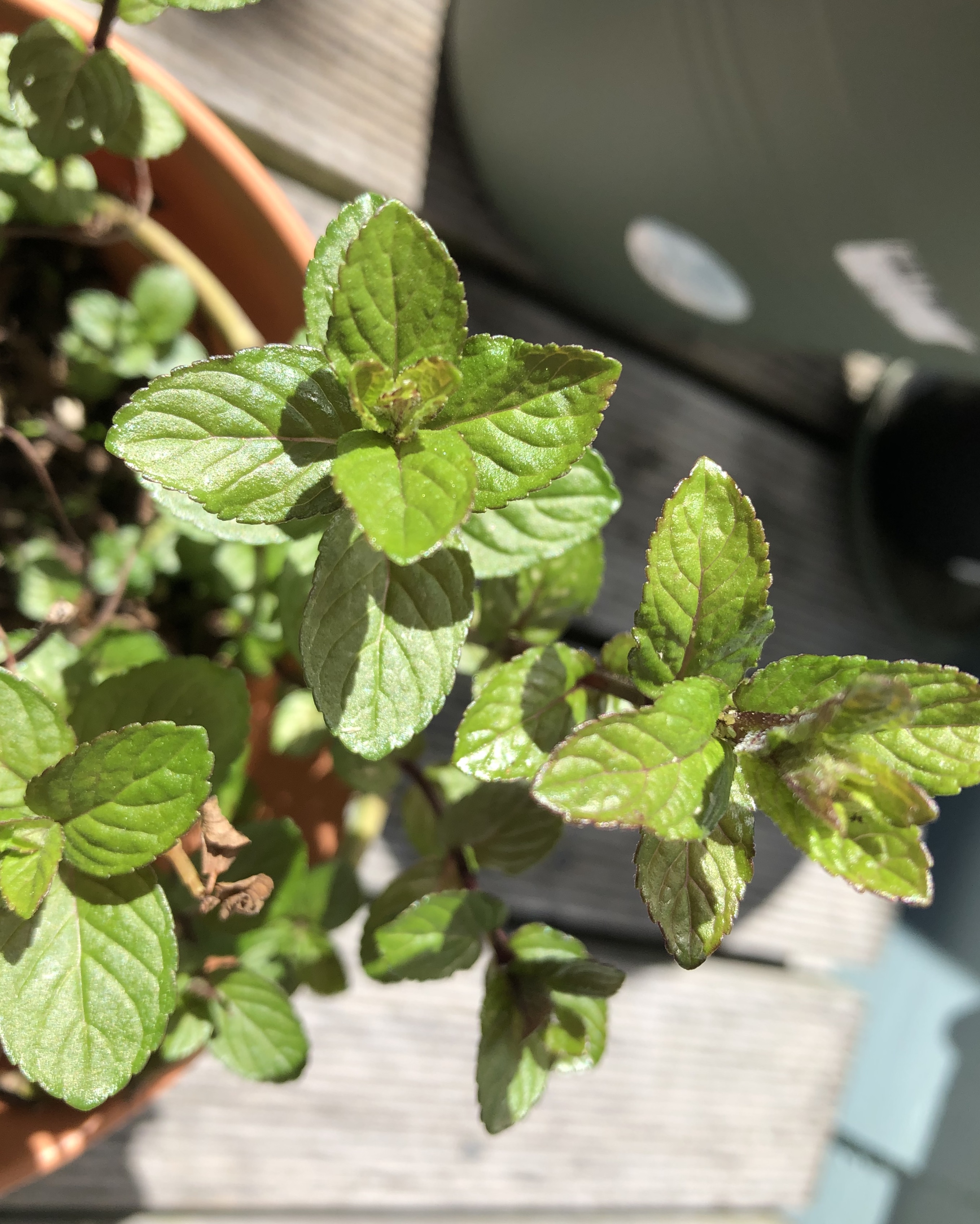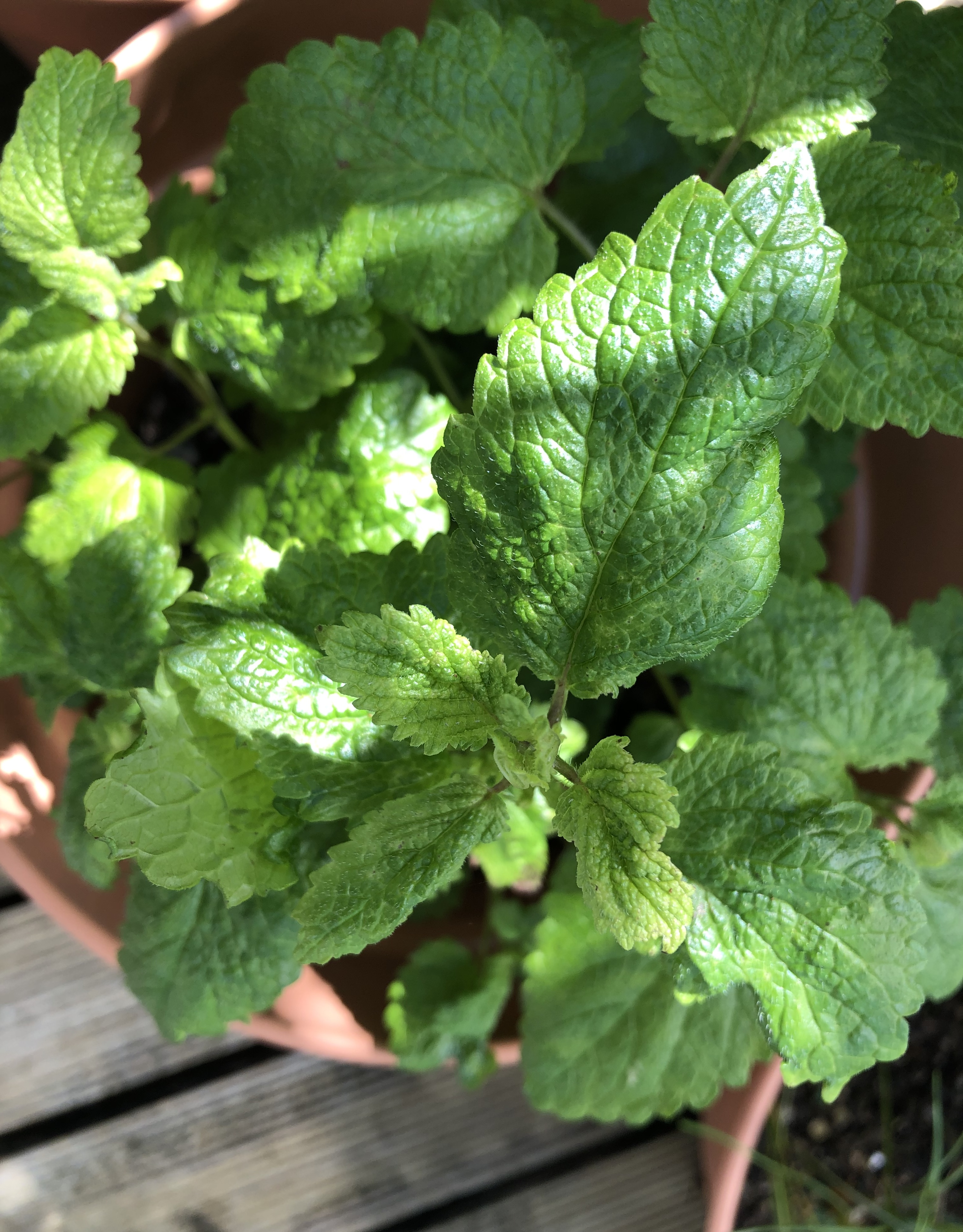 And so to the herbs…the lemon balm and chocolate mint have revived beautifully in the warmer weather, there are a few flowers on the chicken thyme, and the hyssop is also looking good. I really love my pots of herbs!