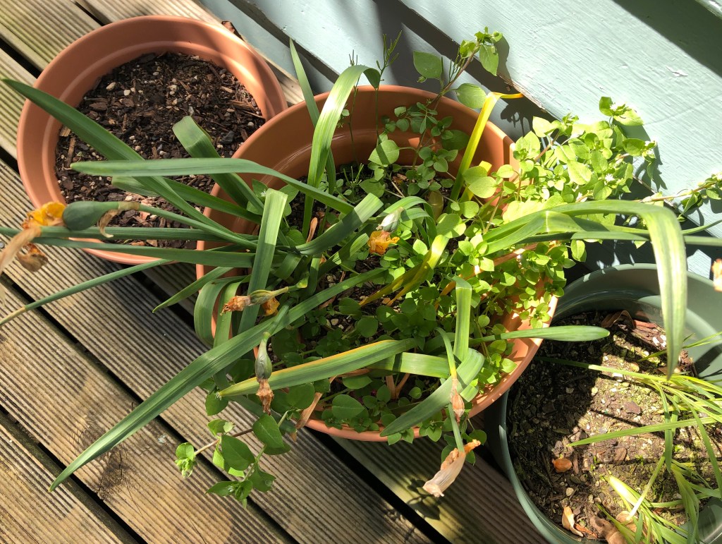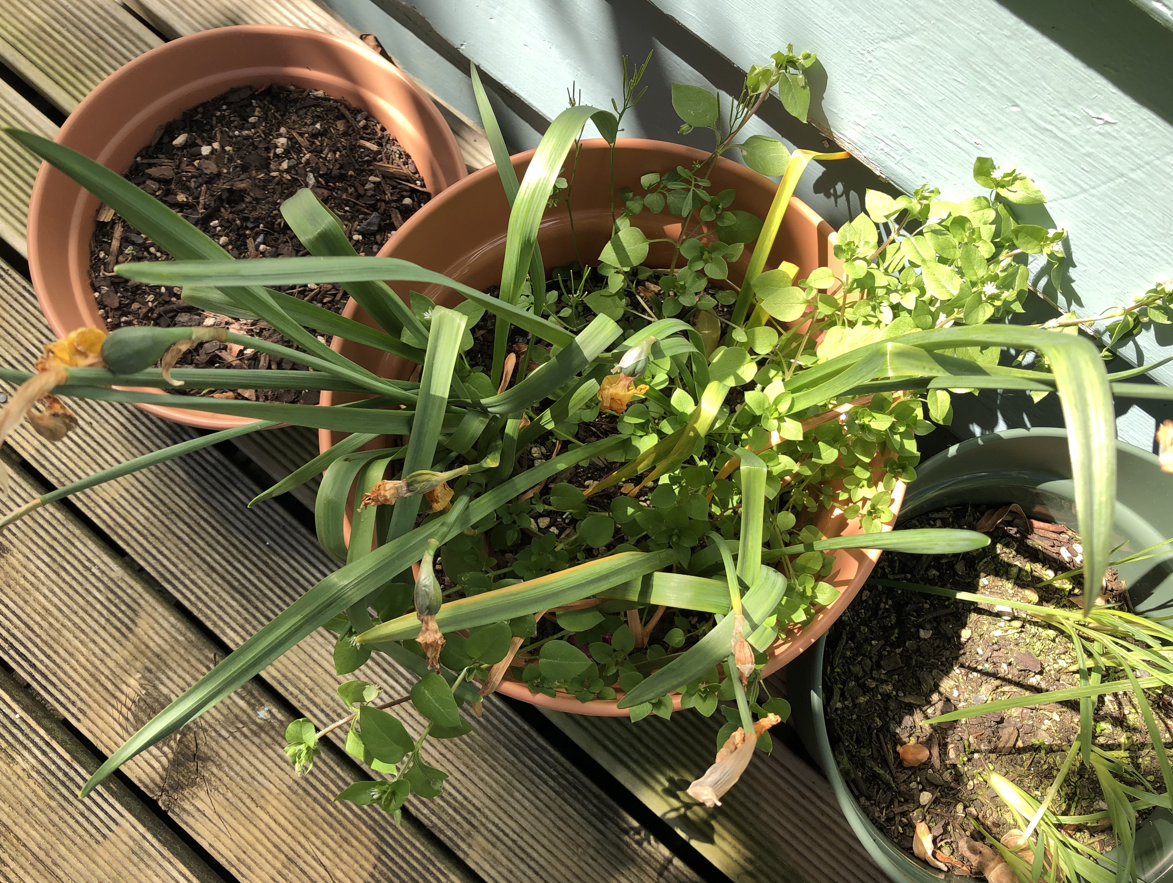 A before and after picture at number two…it is time for a big spring clean of all the pots. It is also time to get seeds planted, if only I could find the time. We were out today, and we are out tomorrow, and I am travelling for work next week….maybe next weekend?